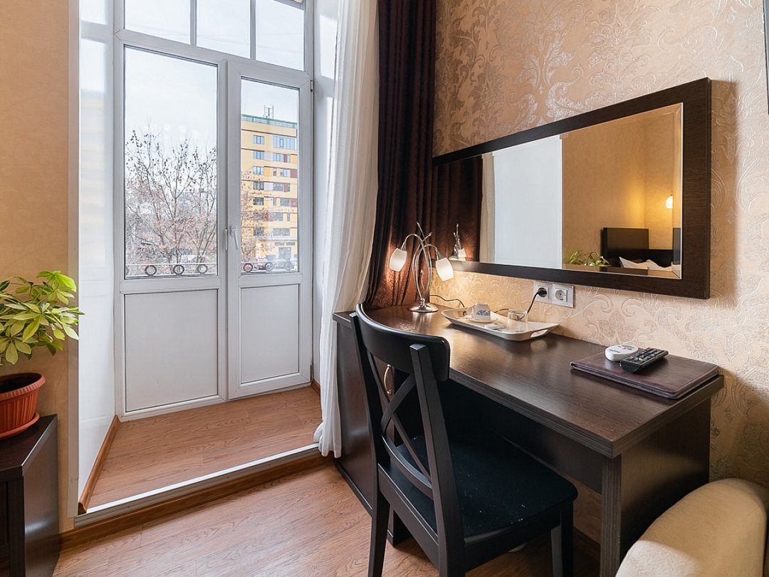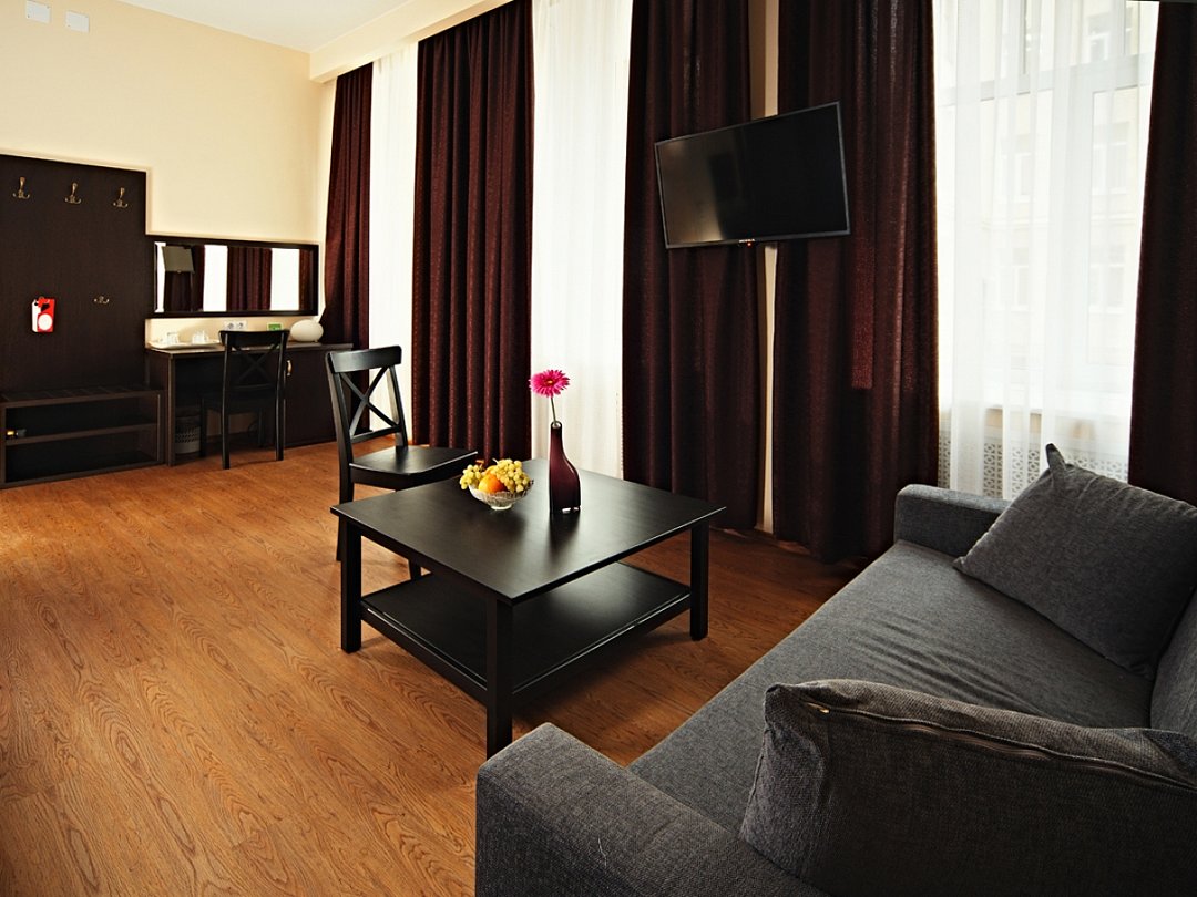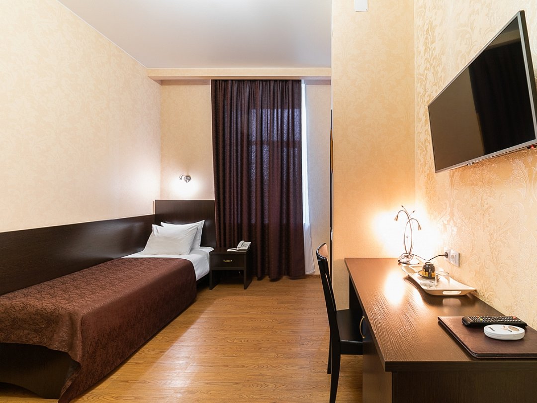 ВНИМАНИЕ! ПО ТЕХНИЧЕСКИМ ПРИЧИНАМ ВОЗМОЖНО РАЗМЕЩЕНИЕ ТОЛЬКО ГРАЖДАН РОССИИ И РЕСПУБЛИКИ БЕЛАРУСЬ Все номера оснащены системой кондиционирования. В каждом номере есть ванная комната с санузлом. Так же имеется телевизор, холодильник, телефон, фен и комплекты полотенец. Для создания более теплой атмосферы Вашего пребывания в гостинице некоторые комнаты этого типа оборудованы камином. А высокие потолки, и большие окна придают номерам простор и легкость.В номере