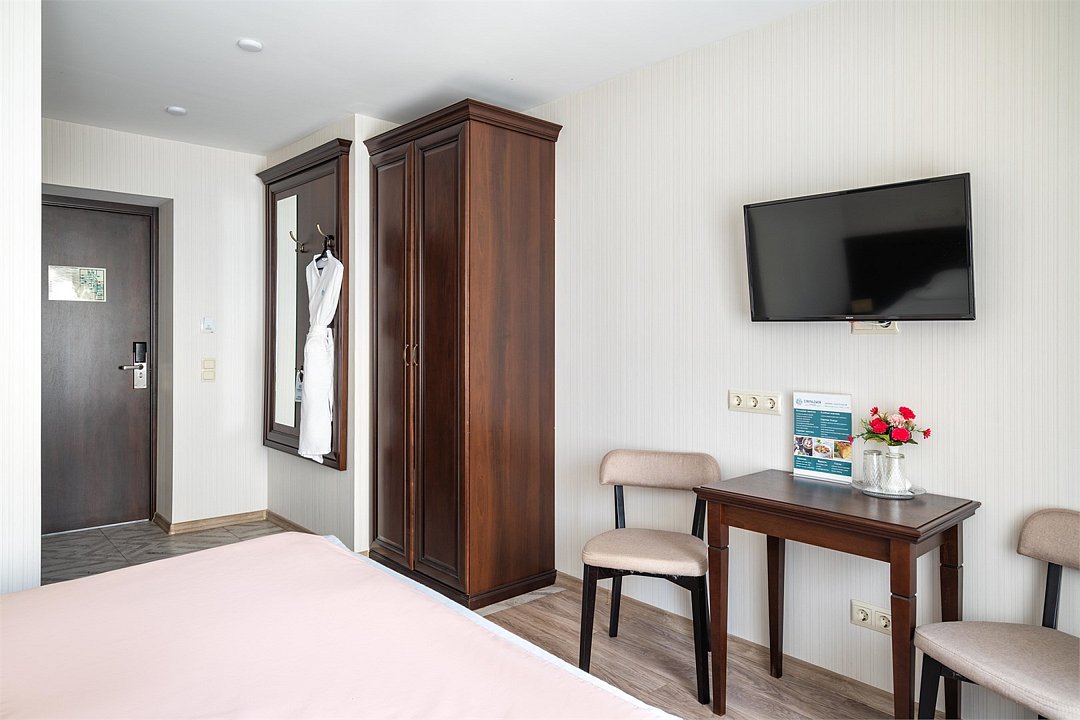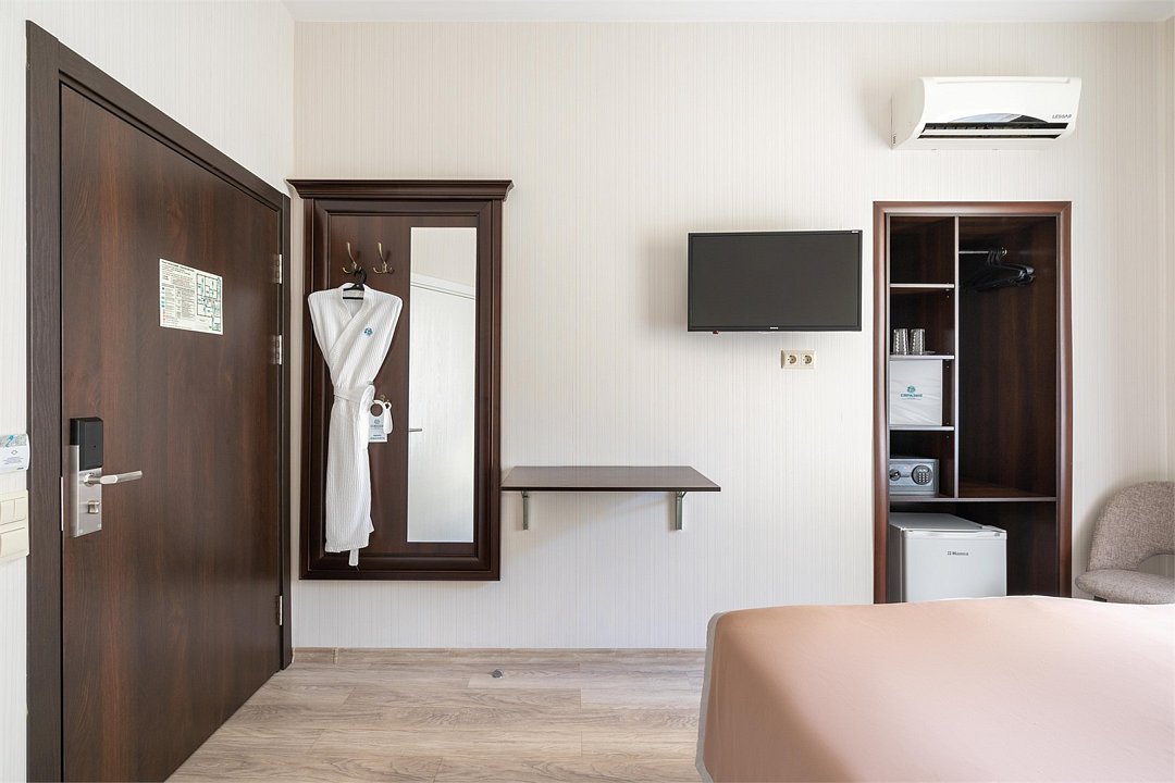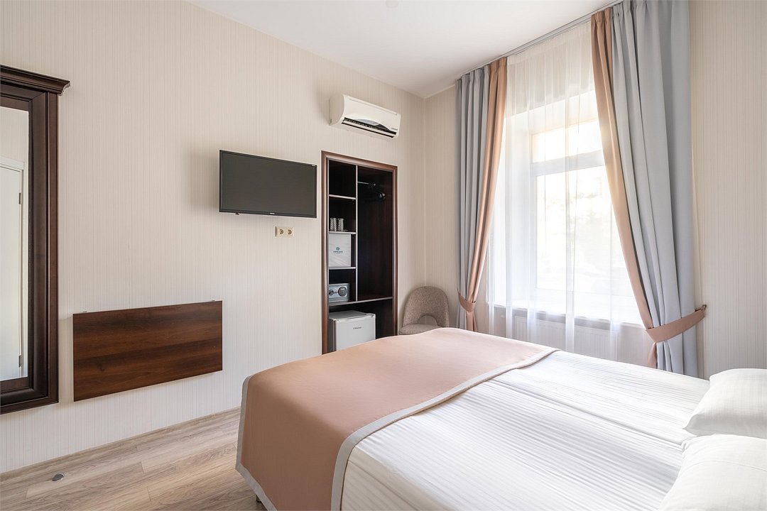 спутниковое телевидение, кабельное телевидение, Wi-Fi, интернет, холодильник, кондиционер, светильник, фен, система безопасности, электронные замки, утюг, обогреватель, ванная комната, душевая кабина, санузел, водонагреватель, теплый пол, банные принадлежности, халаты, банные полотенца, тапочки, гигиенические средства, две односпальные кровати, гладильная доска, ортопедический матрас, детская кровать, шкаф для одежды, гардеробная, вешалки, зеркало, мебельный гарнитур, звуконепроницаемые стены и окна, информационная карта, меню, сейф, унитаз, раковина, питьевая вода, отопление, душ, кулер на этаже, вид во двор, тумба, туалетный столик, туалетные средства, туалет, сплит-система, цифровое тв, телевизор с плоским экраном, мини-холодильник, теплые полы, можно с питомцамиВ номере