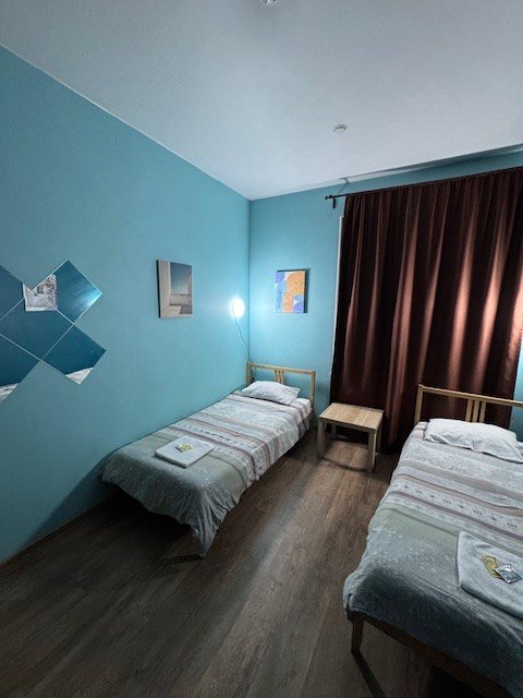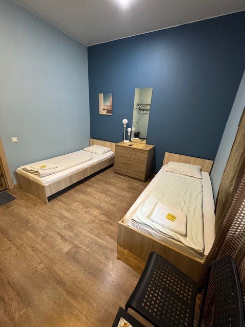 Двухместный номер категории "эконом" с двумя раздельными кроватями, оснащен комодом, тумбочками, вешалкой для одежды, телевизором. Санузел общий и рассчитан на два номера.Услуги и удобства