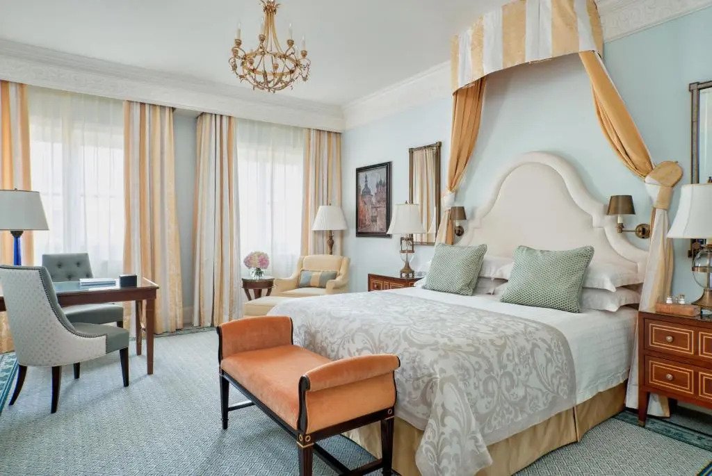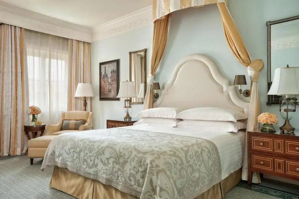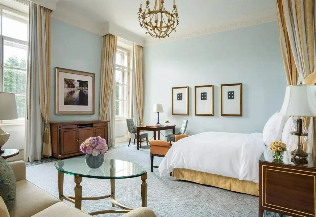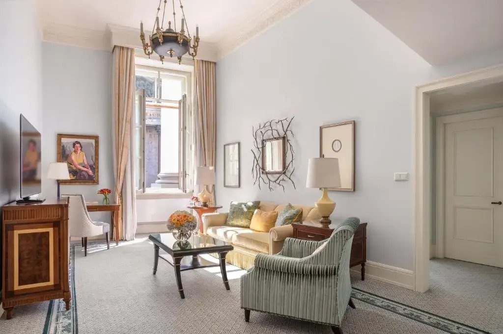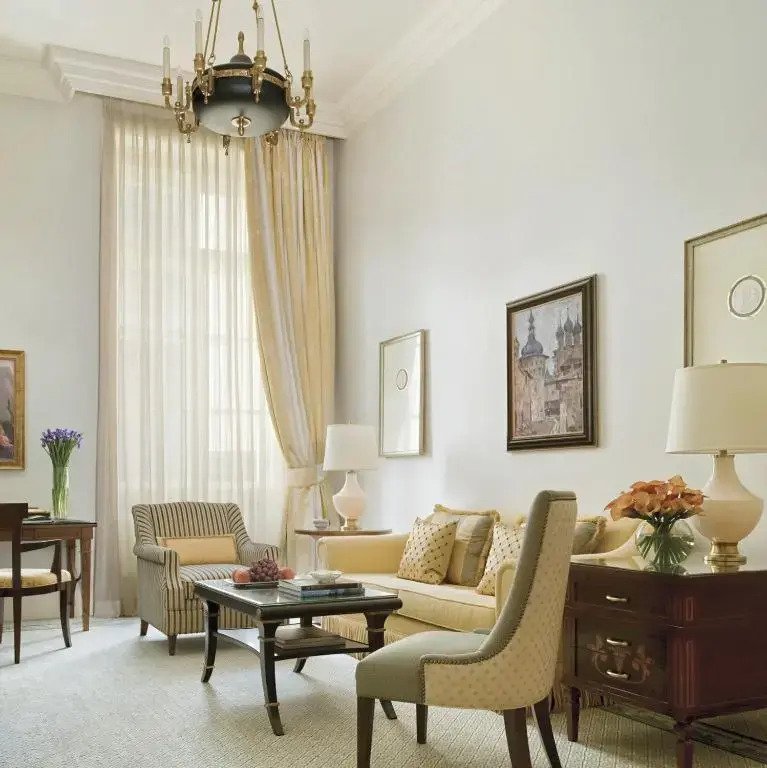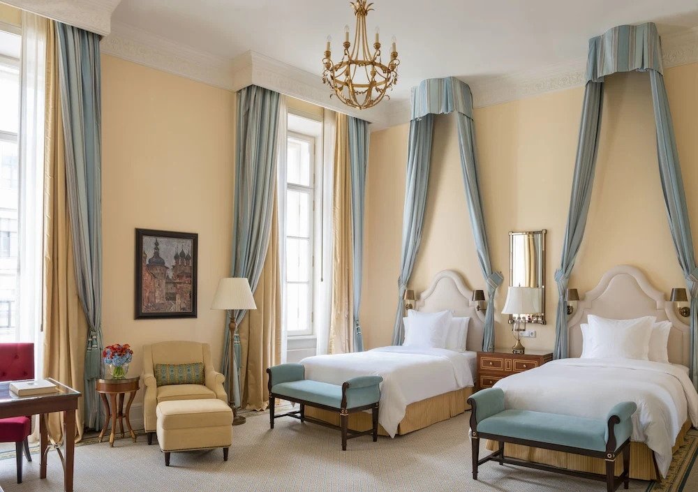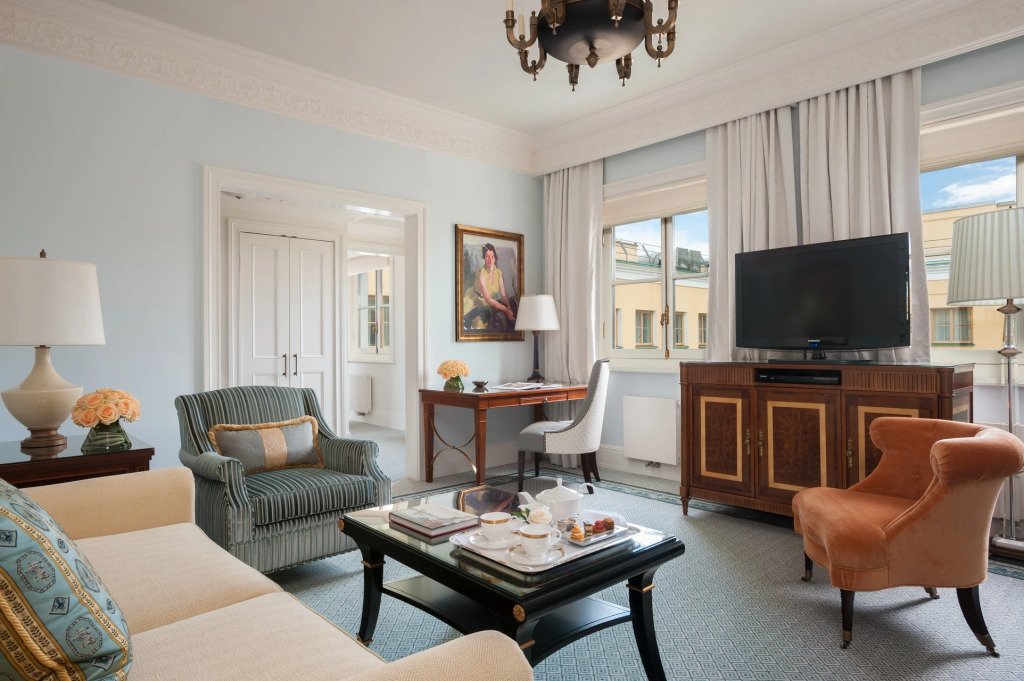 Отель Four Seasons Hotel Lion Palace расположен в историческом здании. Роскошные интерьеры отеля оформлены в стиле ампир и в классическом стиле.