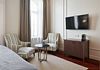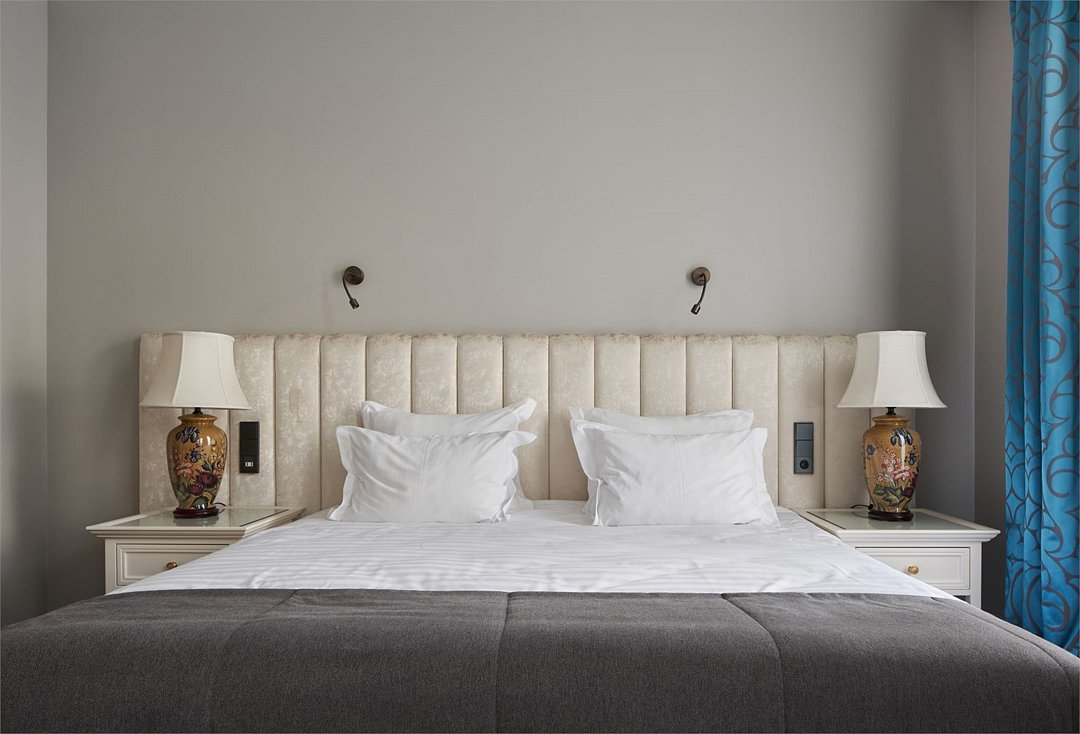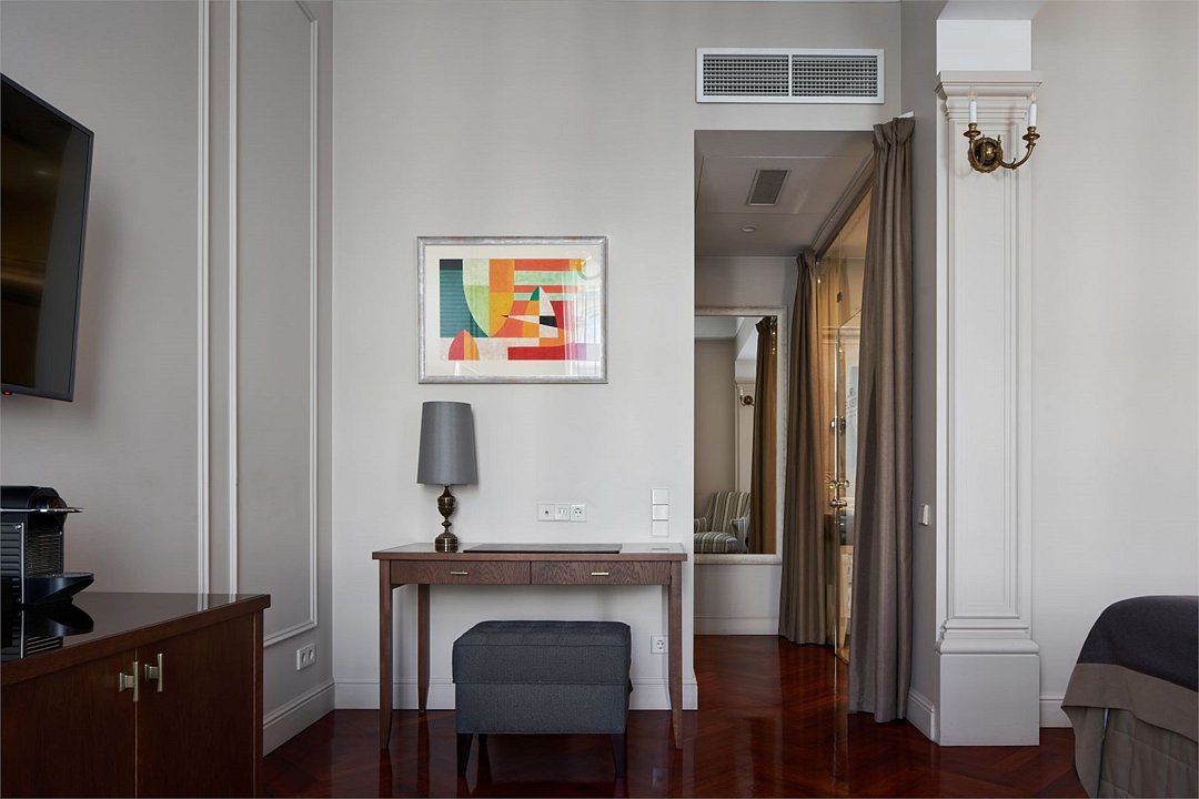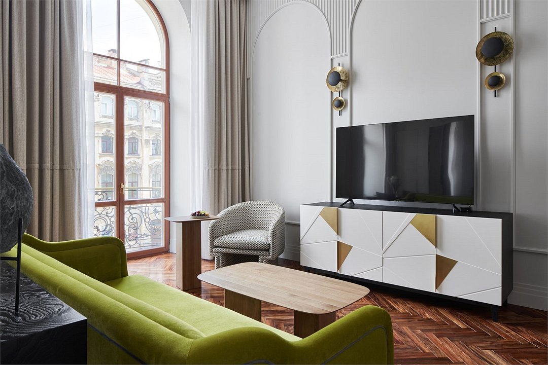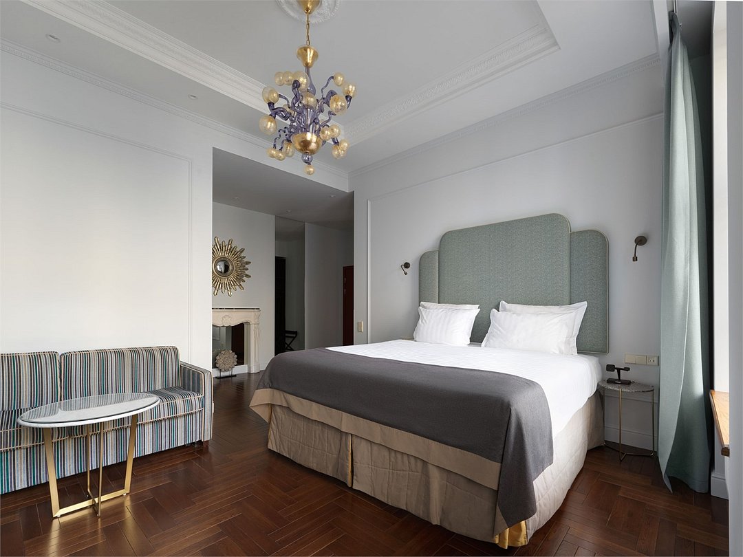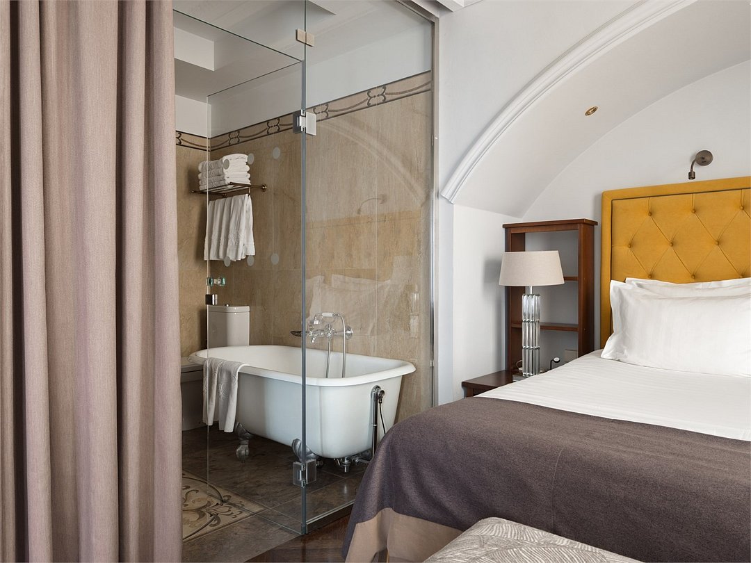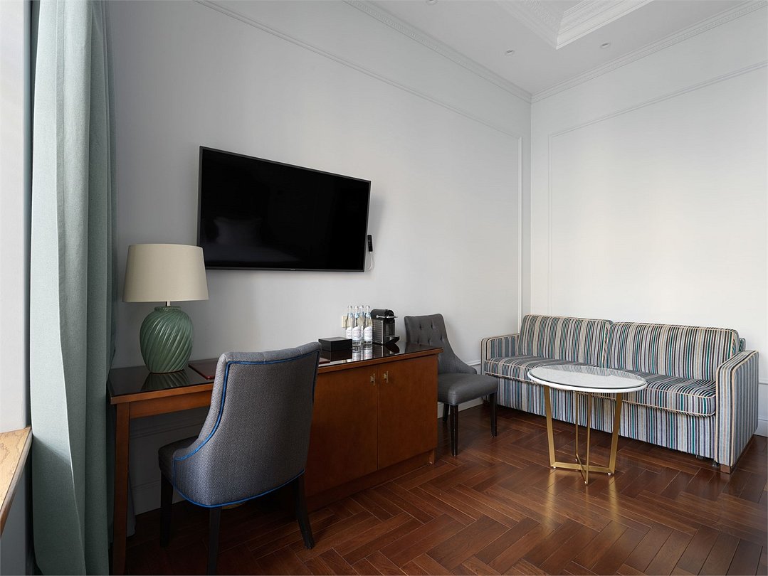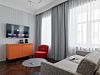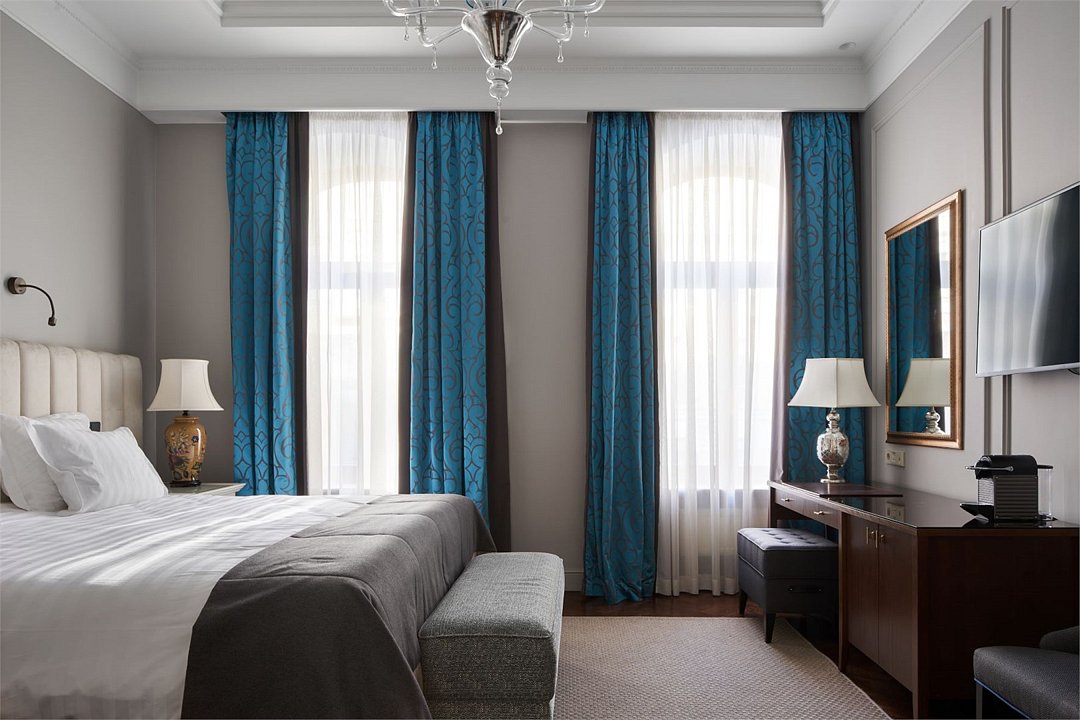 В отеле 4 номера данной категории. Площадь номера 40 кв.м. Номера выдержаны в классическом стиле с элементами современного дизайна, элегантно декорированы и предлагают прекрасные условия размещения. Роскошные люстры из муранского стекла — одна из ярких и индивидуальных деталей интерьера. Номер состоит из гостиной и спальной комнат, разделенных раздвижной стеклянной дверью. В гостиной — диван для отдыха с дополнительным спальным местом, а также уютная кухонная зона с набором необходимой посуды (есть номер без кухонной зоны) Каждый номер оснащён удобным рабочим столом и креслами. Ванная комната — с отделкой из натурального камня. Линейка косметических средств представлена маркой L’OCCITANE. Номера этой категории могут быть объединены с номером Классической категории. В номере возможна полная синхронизация телевизора с гаджетами (Android и IOS). Гостям предлагается завтрак шведский стол в ресторане Мариус в будние дни с 7.00 до 10.30, в выходные с 7.00 до 11.00. Все номера в отеле для некурящих.Услуги и удобства