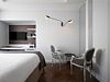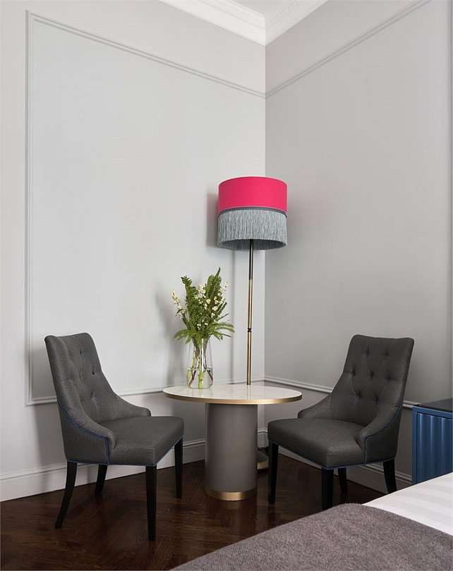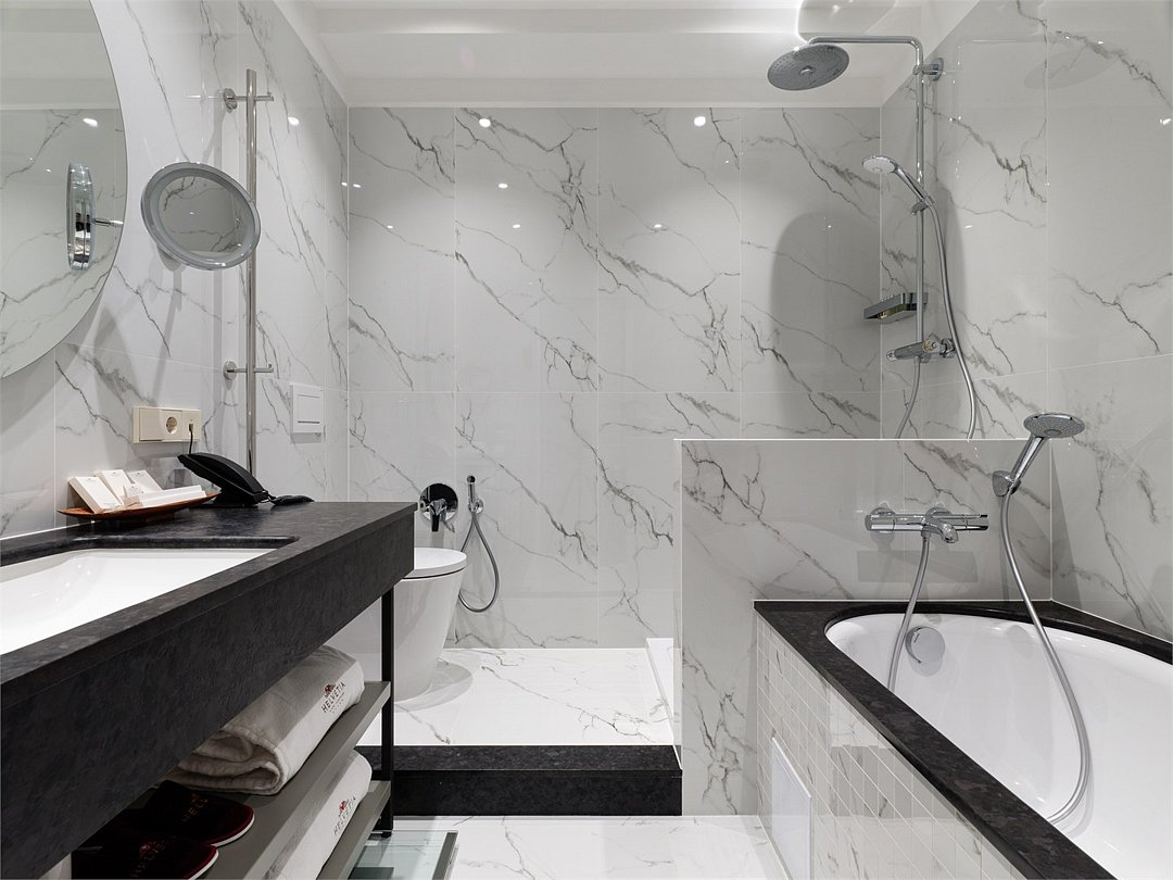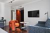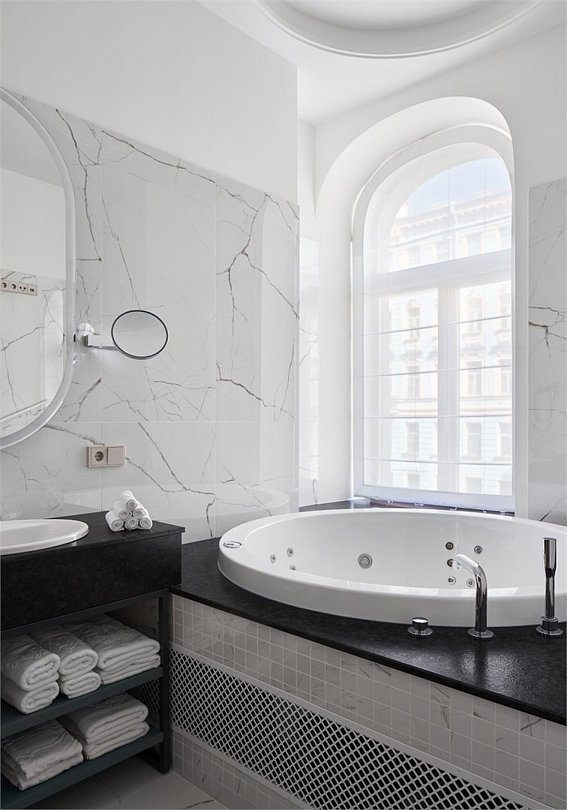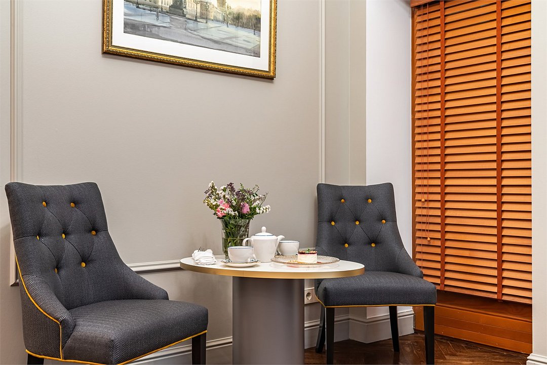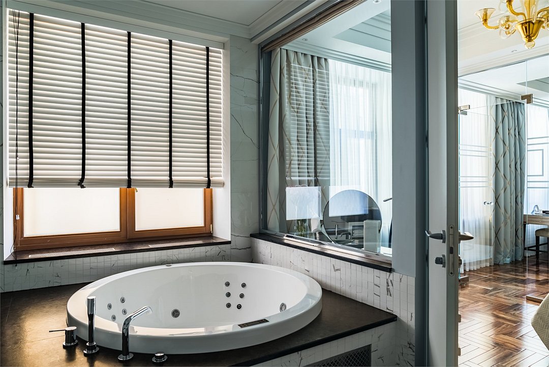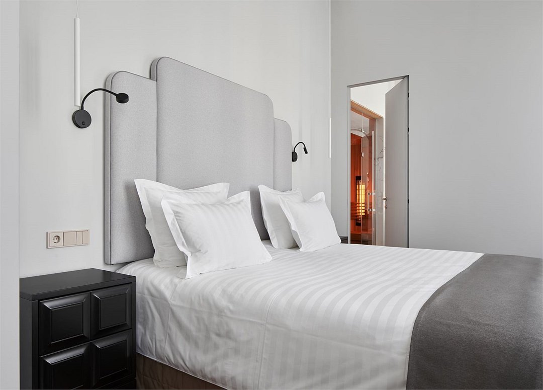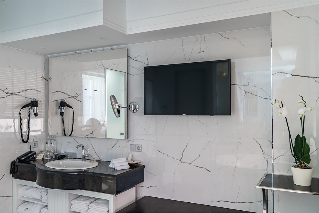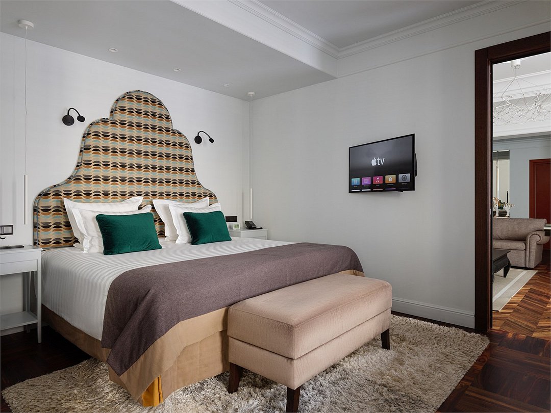 В отеле 4 номера данной категории. Площадь номера 40 кв.м. Номера выдержаны в классическом стиле с элементами современного дизайна, элегантно декорированы и предлагают прекрасные условия размещения. Роскошные люстры из муранского стекла — одна из ярких и индивидуальных деталей интерьера. Номер состоит из гостиной и спальной комнат, разделенных раздвижной стеклянной дверью. В гостиной — диван для отдыха с дополнительным спальным местом, а также уютная кухонная зона с набором необходимой посуды (есть номер без кухонной зоны) Каждый номер оснащён удобным рабочим столом и креслами. Ванная комната — с отделкой из натурального камня. Линейка косметических средств представлена маркой L’OCCITANE. Номера этой категории могут быть объединены с номером Классической категории. В номере возможна полная синхронизация телевизора с гаджетами (Android и IOS). Гостям предлагается завтрак шведский стол в ресторане Мариус в будние дни с 7.00 до 10.30, в выходные с 7.00 до 11.00. Все номера в отеле для некурящих.Услуги и удобства