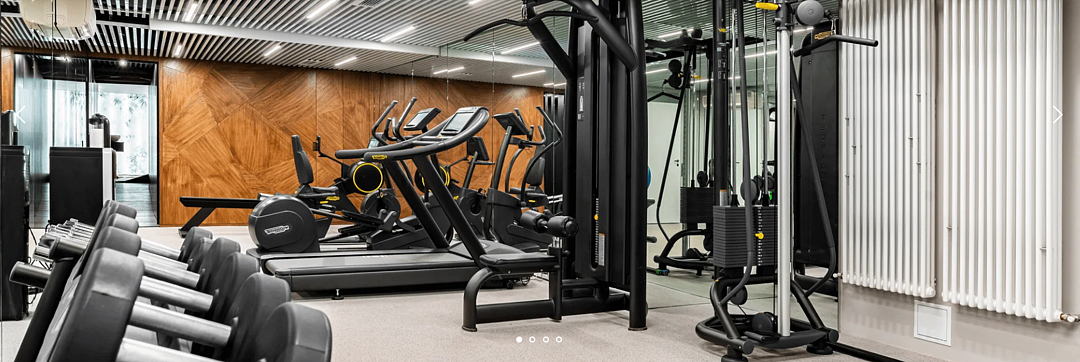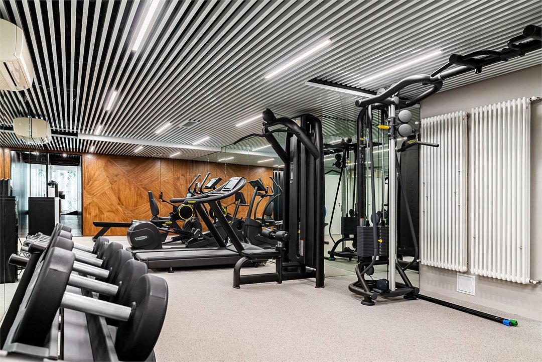 Фитнес-зал площадью 80 м2 оснащен современным итальянским оборудованием Technogym, которое позволяет поддерживать тело в тонусе и тренировать все группы мышц. Доступ в зал предоставляется круглосуточно. Входит в стоимость проживания.