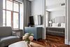 телевизор, кабельное телевидение, Wi-Fi, телефон, кондиционер, фен, кофемашина, ванна, халаты, банные полотенца, тапочки, косметические средства, двуспальная кровать, стулья, шкаф для одежды, вешалки, журнальный столик, багажная тумба, барная стойка, зеркало, эксклюзивная мебель, кухня, мини-бар, чайный набор, обслуживание номеров, сейф, гостиная зона, раскладной диван, можно с питомцамиВ номере