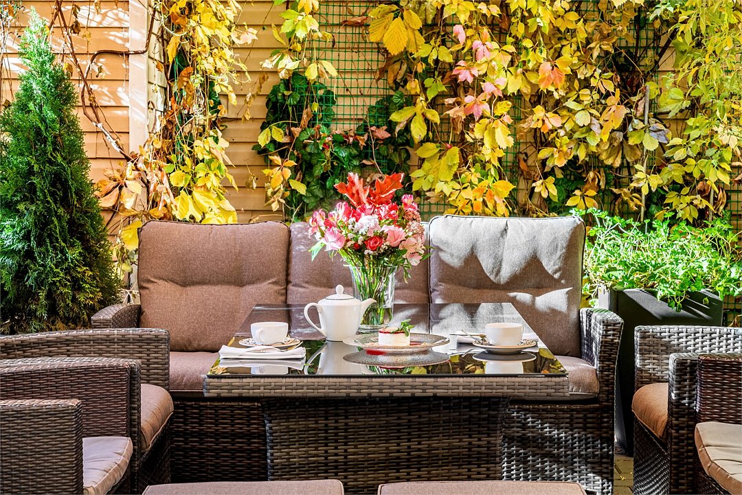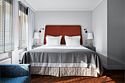Wi-Fi, телефон, кондиционер, светильник, фен, электронные замки, утюг, ванна, халаты, тапочки, гигиенические средства, косметические средства, тумбы, шкаф для одежды, вешалки, письменный стол, зеркало, обслуживание номеров, чайник, питьевая вода, вид во двор, паркет, две кровати «Queen size», меню подушек, стул, телевизор с плоским экраном, номер для некурящих, можно с питомцамиВ номере