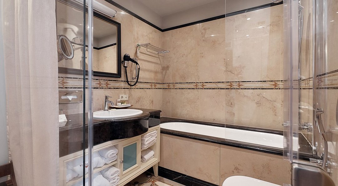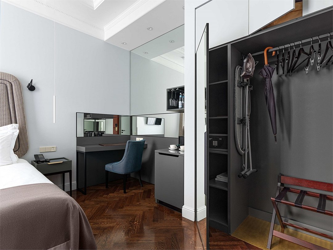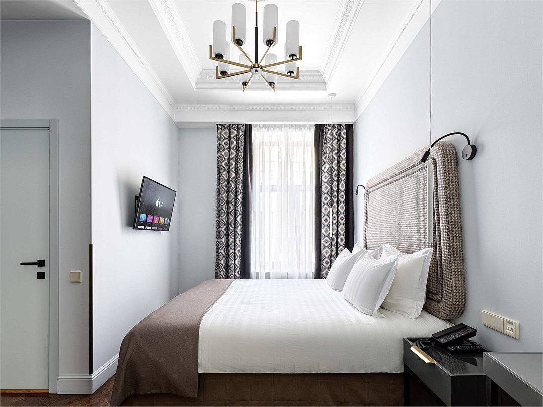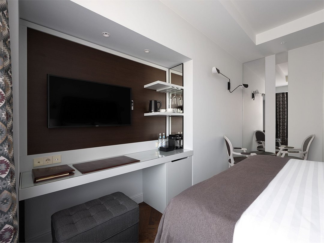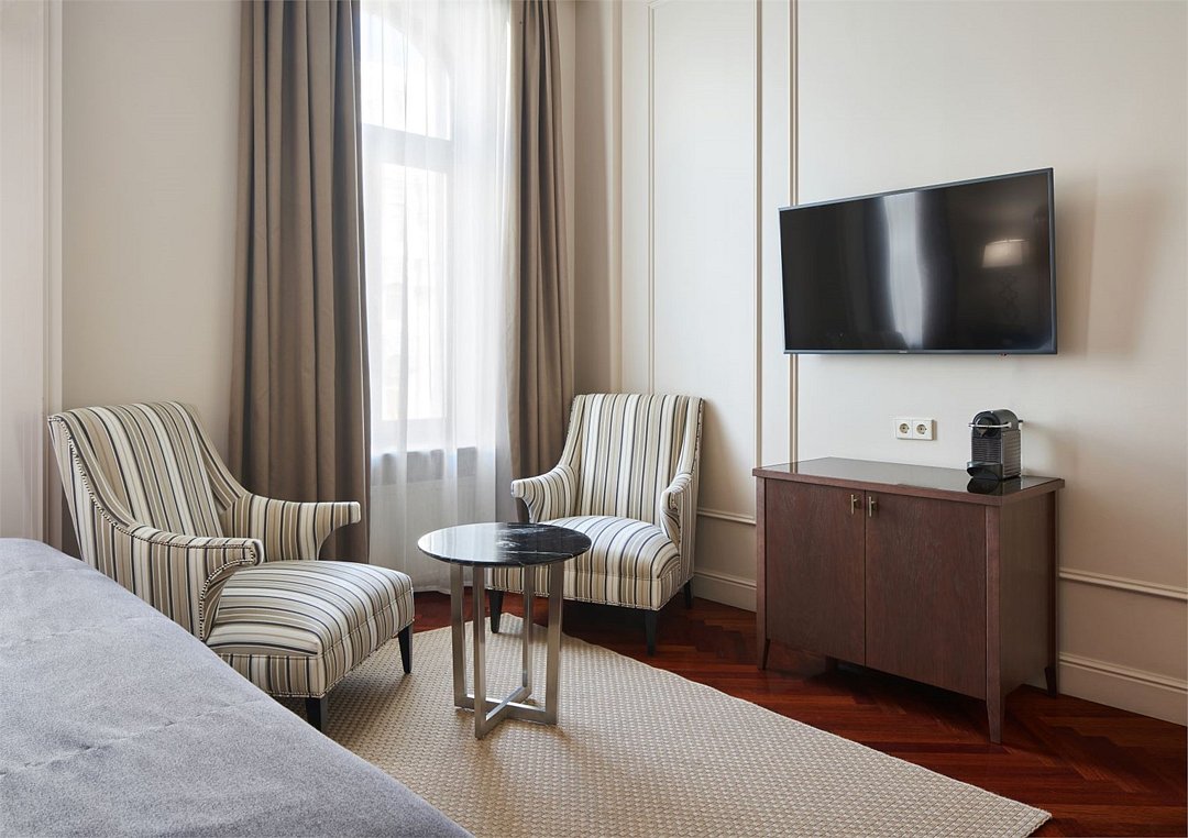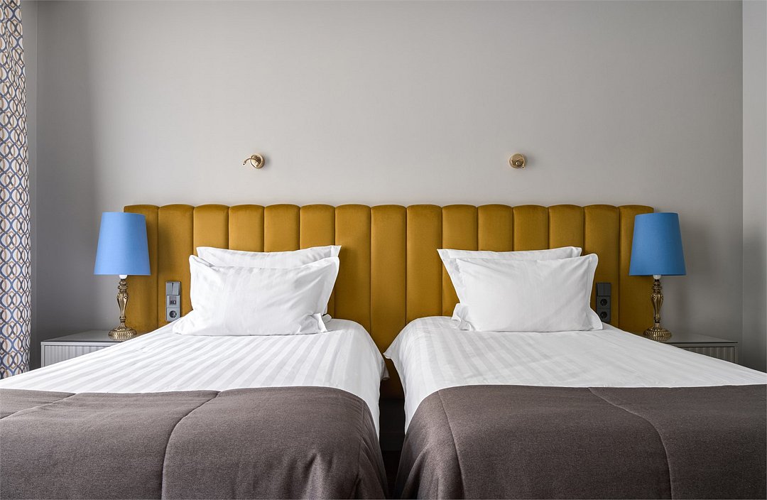 Площадь номера 22-24 кв.м. Просторные и элегантные номера, выполненные в классическом стиле с элементами барокко с одной большой или двумя раздельными кроватями. Номер оснащен удобным рабочим столом. Установлена кофемашина. В данной категории есть возможность предоставить две раздельные кровати. Один из номеров в данной категории с мансардным окном и диваном. Все номера в отеле для некурящих.Услуги и удобства