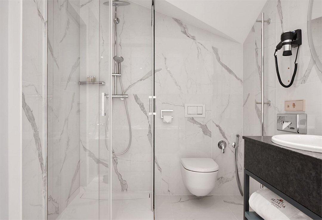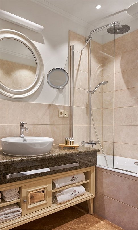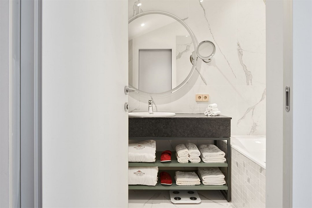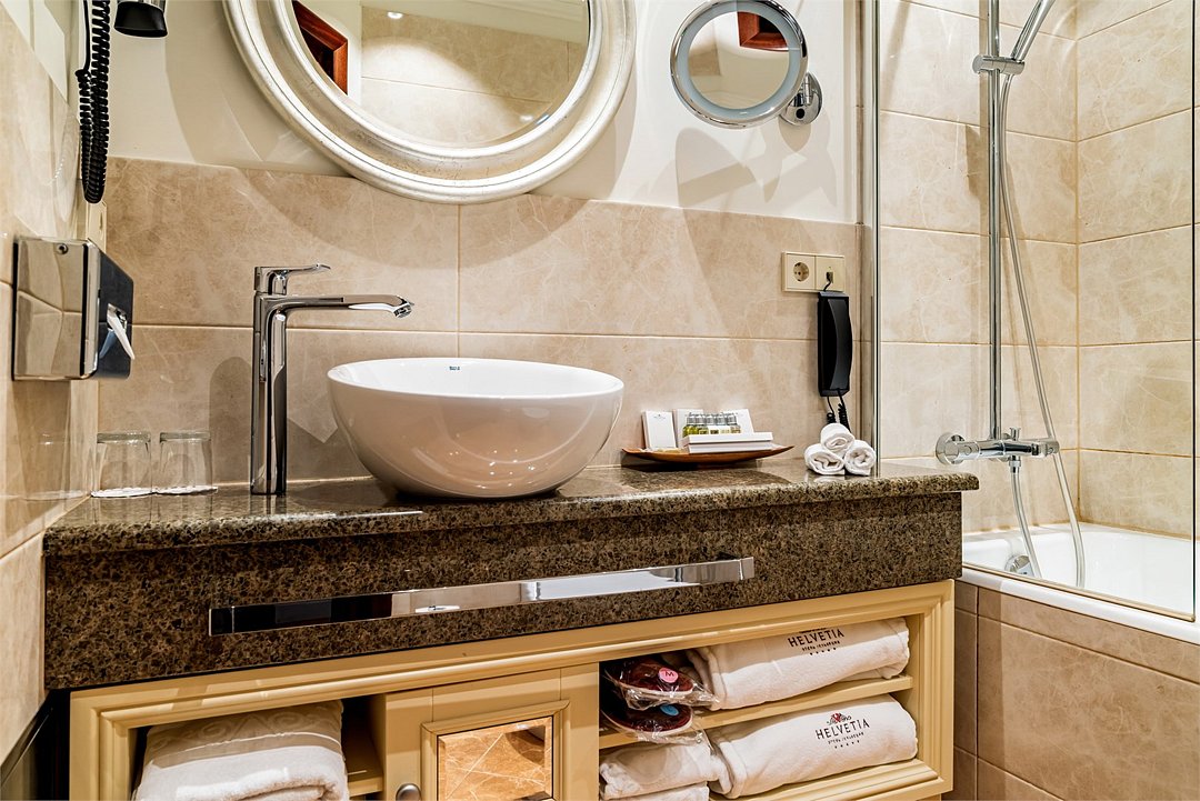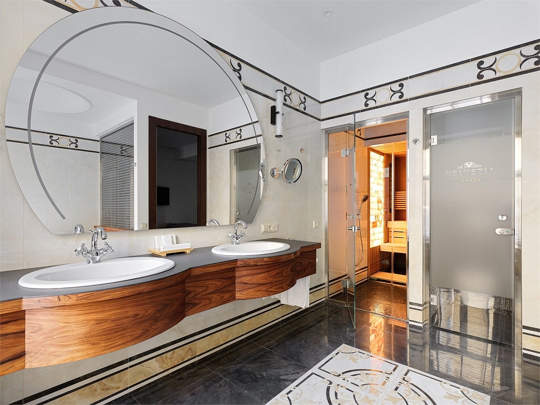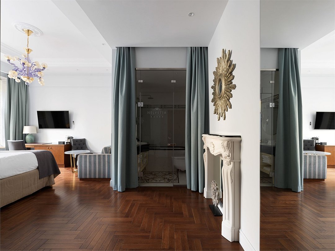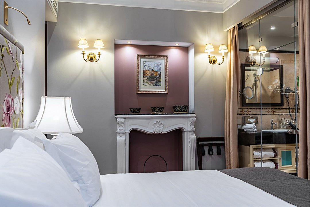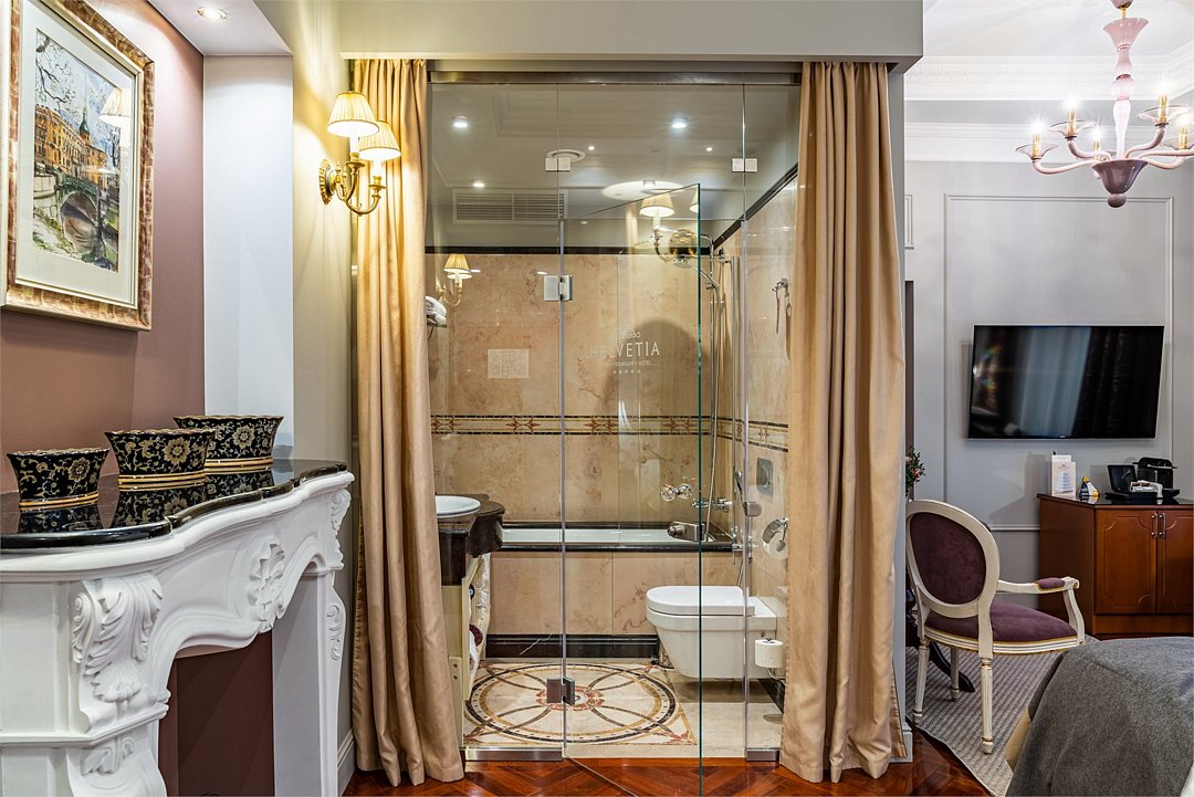 Отель "Гельвеция" дополняет коллекцию номеров высокого класса Представительскими Люксами. Таких номеров в отеле три.Площадь номеров составляет 90 кв.м. Изысканные детали интерьера, тщательно подобранная мебель и текстиль, а также высокотехнологичное оснащение создают атмосферу уюта и притягательной роскоши. Люксы предлагают гостям просторную гостиную с обеденной и рабочей зонами, уютную спальную комнату и зону СПА, включающую сауну, круглую ванну джакузи, душевую кабину. Помимо этой зоны в номере есть гостевая туалетная комната. В номере возможна полная синхронизация телевизора с гаджетами (Android и IOS). Гостям предлагается завтрак шведский стол в будние дни с 7.00 до 10.30, в выходные с 7.00 до 11.00. Все номера в отеле для некурящихУслуги и удобства