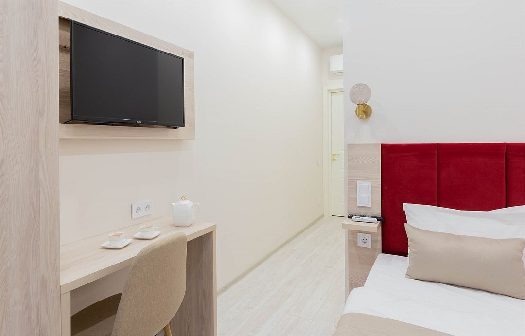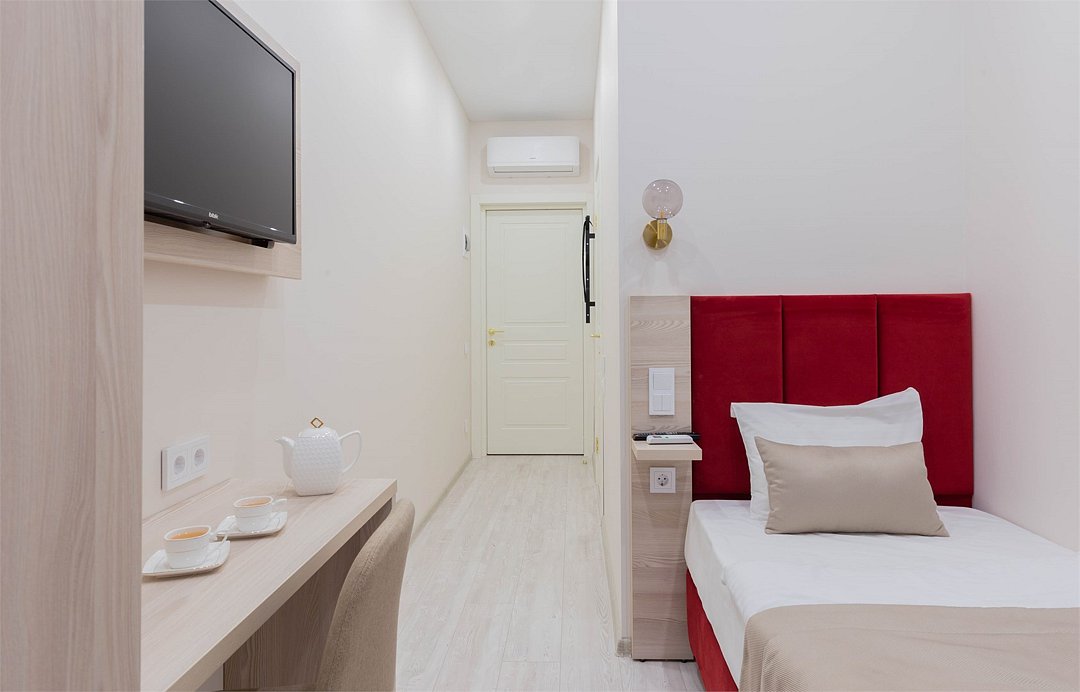 Одноместный номер с односпальной кроватью. В номере есть все самое необходимое для комфортного проживания: - собственная ванная комната с душевой; - косметические принадлежности; - индивидуальное кондиционирование; - чайная станция; - ТВ; - бесплатный WiFi; -шкаф для хранения вещей;Услуги и удобства