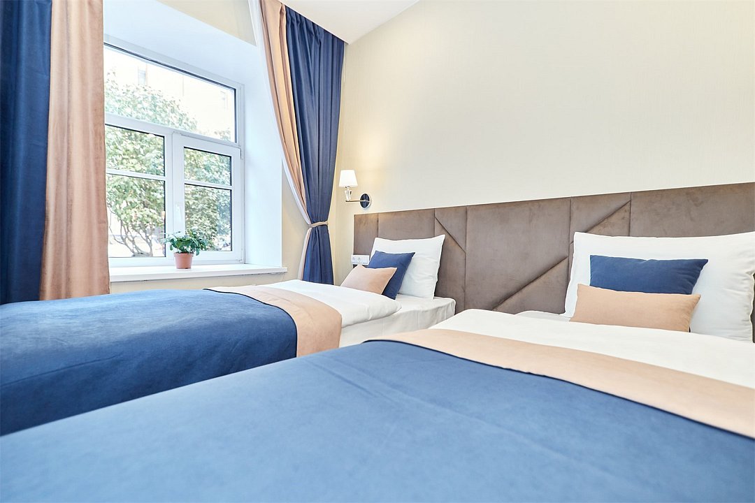 телевизор, Wi-Fi, кондиционер, система климат-контроля, светильник, кулер, фен, система безопасности, электронные замки, утюг, душевая кабина, санузел, банные принадлежности, банные полотенца, косметические средства, двуспальная кровать, две односпальные кровати, гладильная доска, тумбы, шкаф для одежды, вешалки, зеркало, звуконепроницаемые стены и окна, сейф, чайник, унитаз, питьевая вода, отопление, кулер на этаже, вид во двор, паркет, ламинат, стул, туалетный столик, туалетные средства, сплит-система, цифровое тв, телевизор с плоским экраном, москитная сетка, номер для некурящих, пуфик, можно с питомцамиВ номере