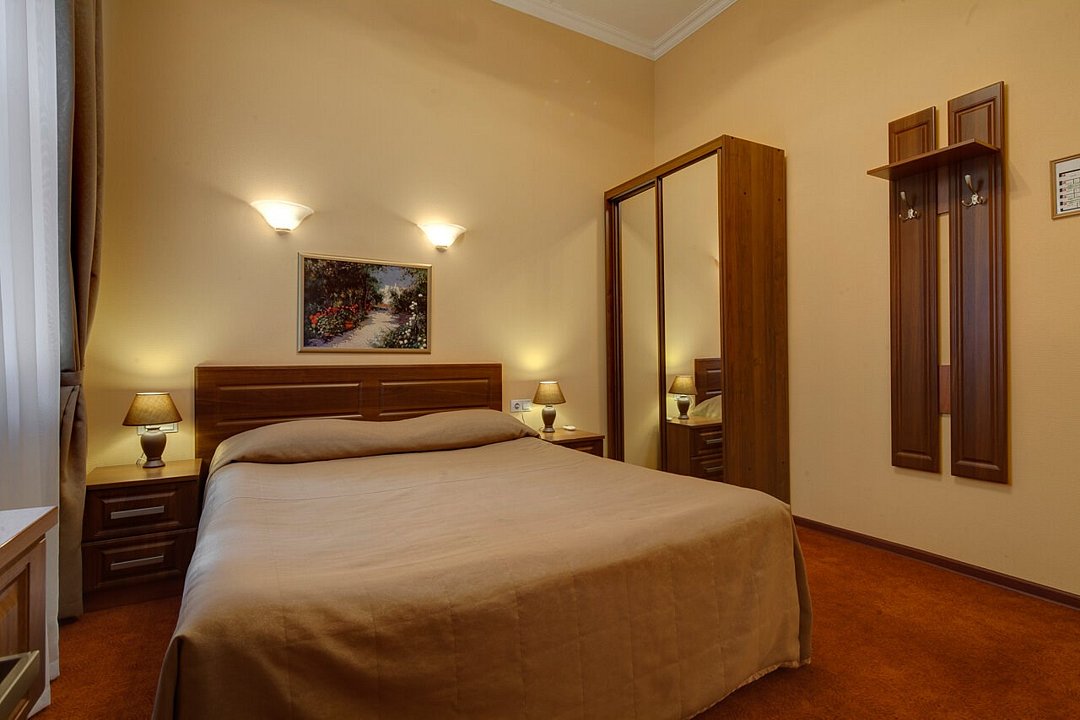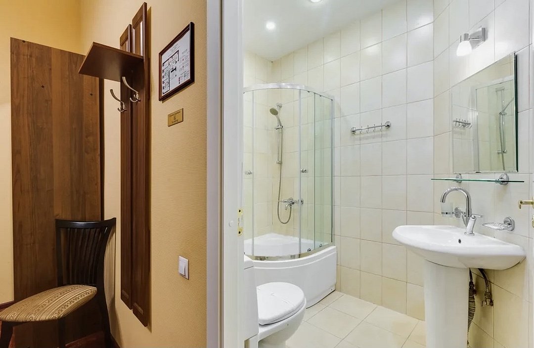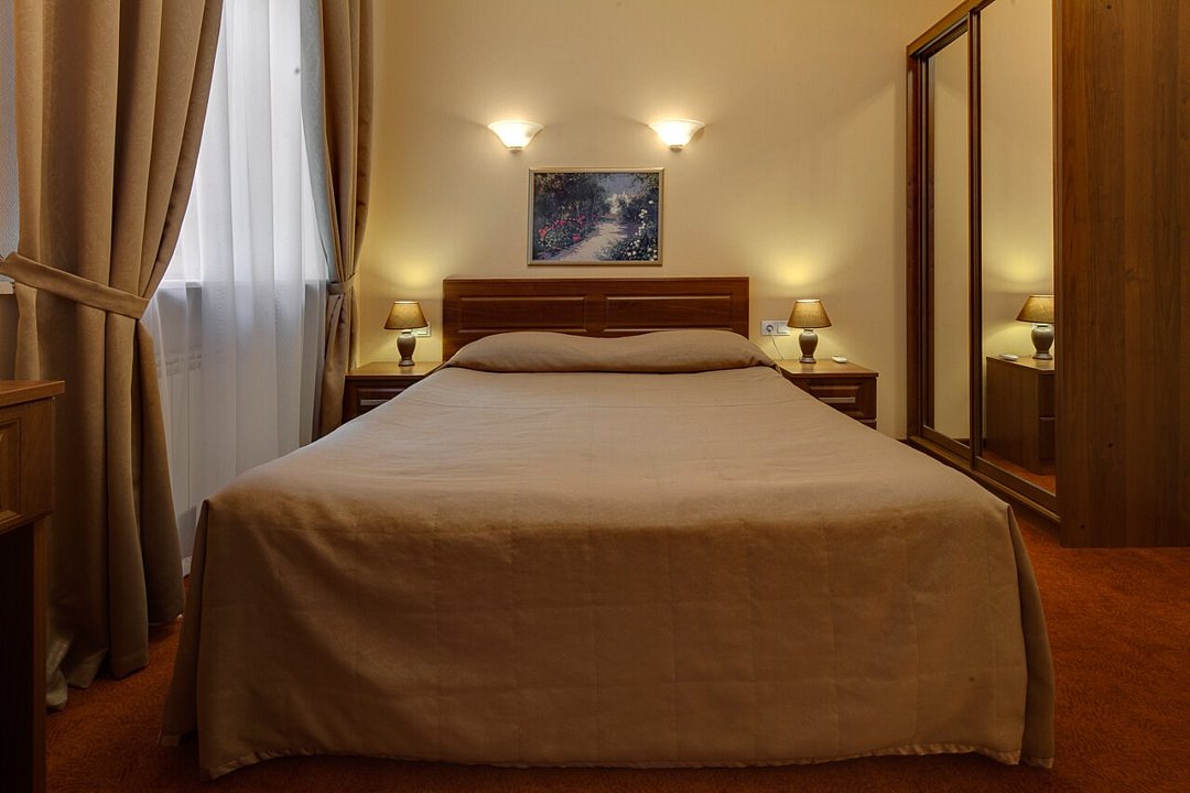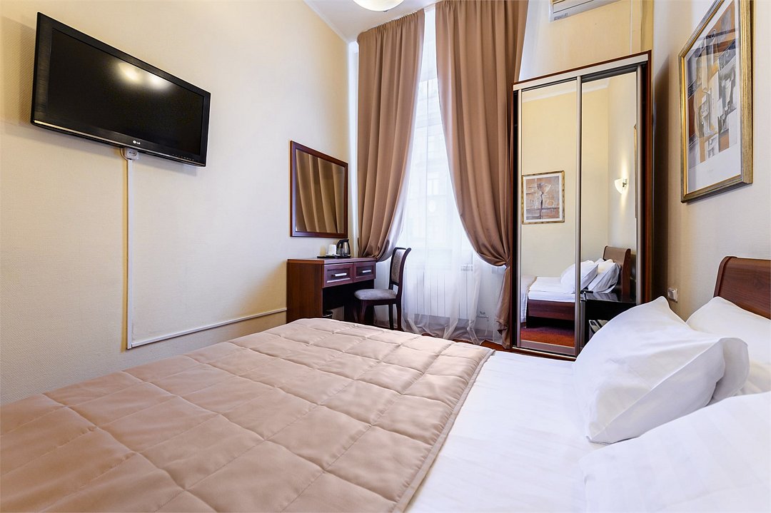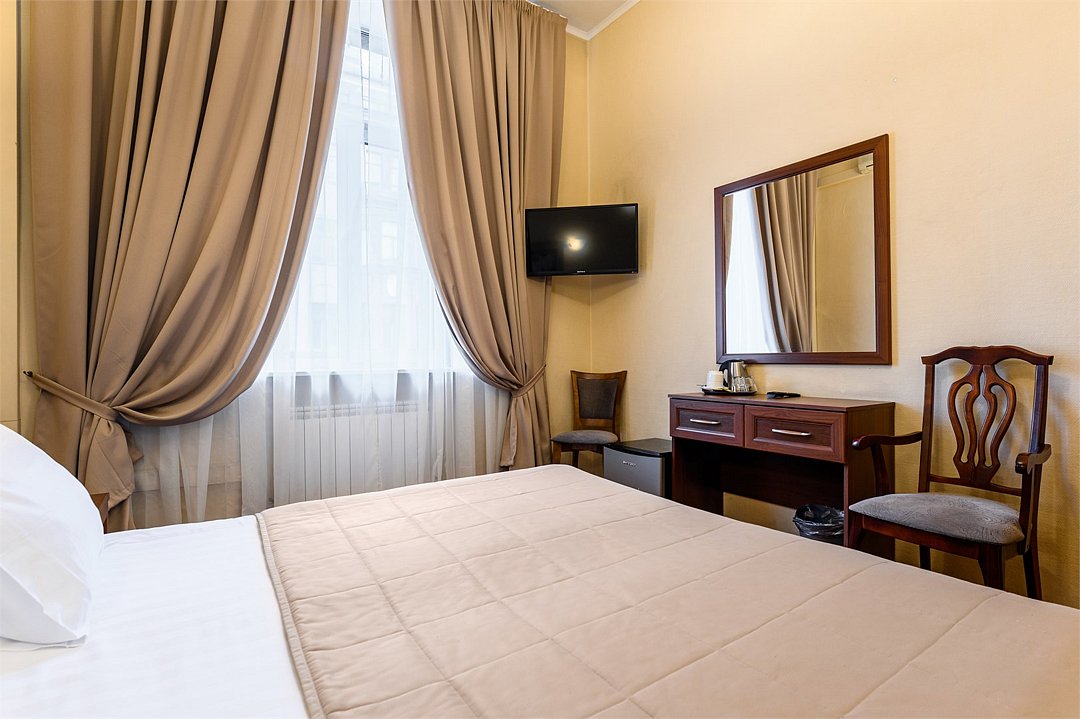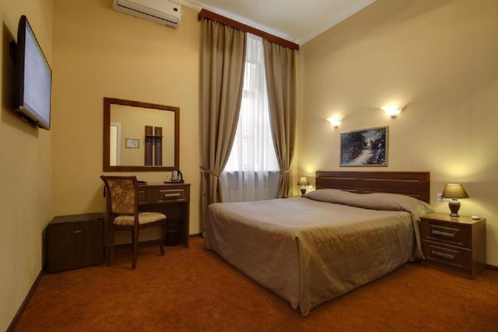 телевизор, кабельное телевидение, Wi-Fi, кондиционер, светильник, фен, душевая кабина, санузел, банные принадлежности, банные полотенца, тапочки, двуспальная кровать, тумбы, стулья, вешалки, зеркало, чайный набор, набор посуды, сейф, чайник, раковина, ковровое покрытие, отопление, вид на город, кулер на этаже, вид во двор, высокие потолки, стаканы, стул, телевизор с плоским экраном, мини-холодильник, шкаф-купе, гостиничная парфюмерия, номер для некурящих, рабочий стол, можно с питомцамиВ гостиничном номере