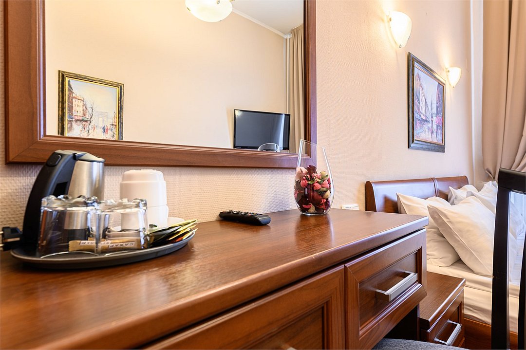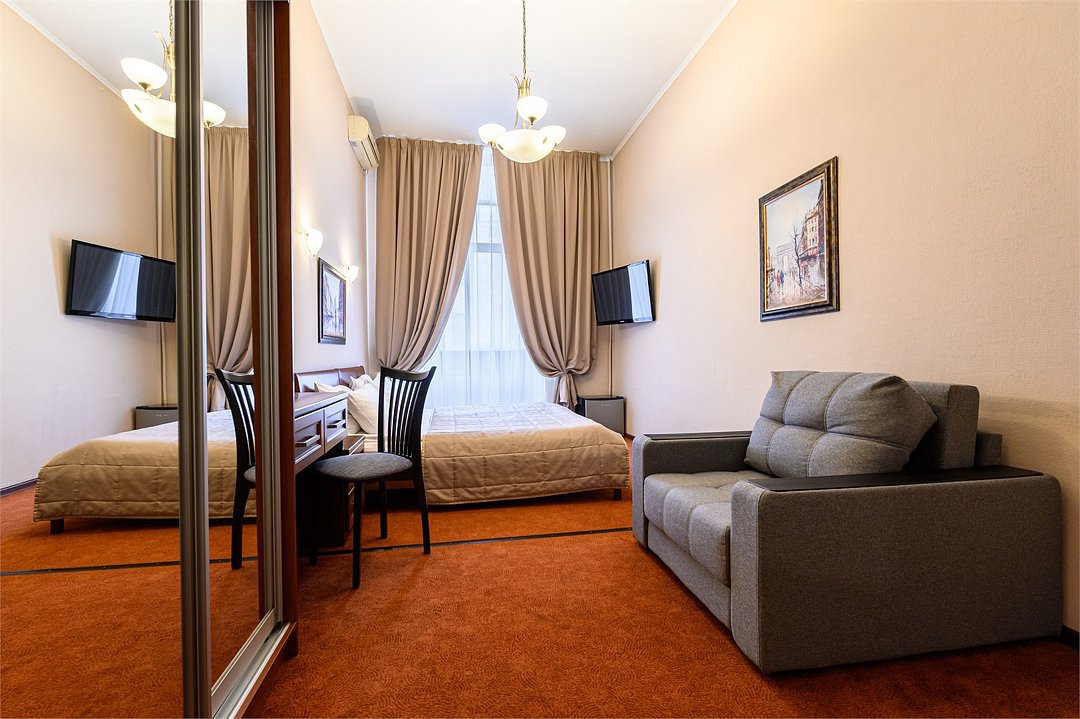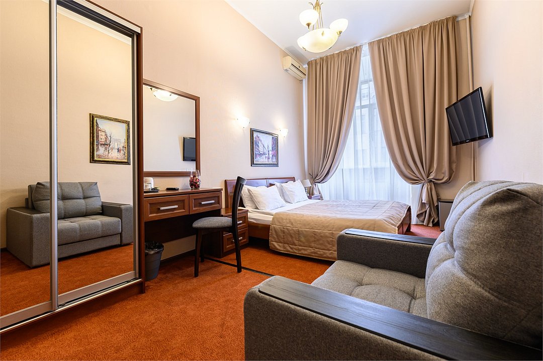 -Улучшенный просторный номер, кресло-кровать дополнительное спальное место, -Высокий уровень комфорта с удобным матрацем, -Личная чайная станция, холодильник, кондиционер в номере, -Вид на улицу.Услуги и удобства