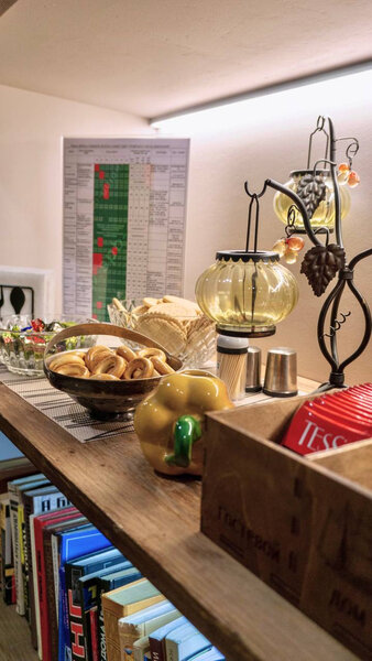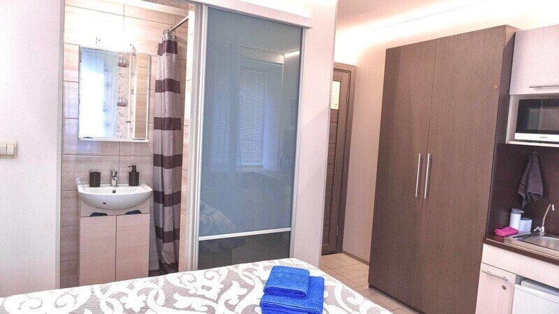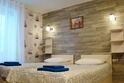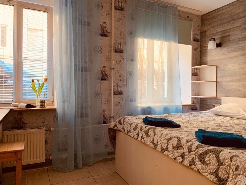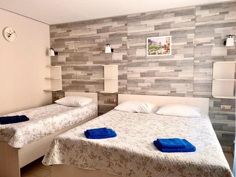 Отель расположен на первом этаже, а его окна выходят на красивый озеленённый дворик. Гостям доступны номера класса комфорт, одноместные, двухместные и трехместные, с раздельными и двухместными кроватями. В каждом номере есть набор посуды, чайник, холодильник, микроволновая печь, а также собственная ванная комната с феном, зеркалом и необходимыми туалетными принадлежностями.