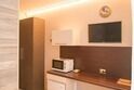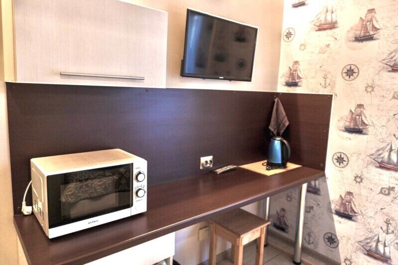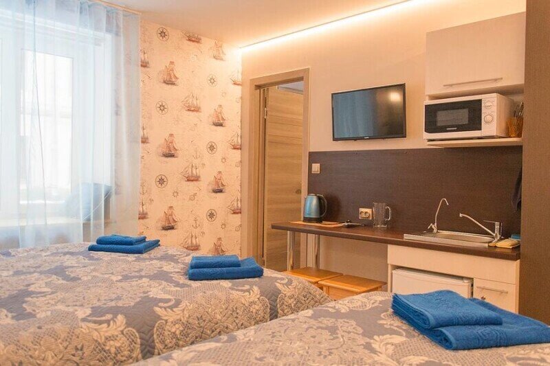 Оборудование номера отвечает всем требованиям современности для комфортного отдыха: ЖК-телевизор, чайник, холодильник, мини-кухня с небольшим набором посуды. В гостевом доме действует бесплатный высокоскоростной интернет (Wi-Fi).