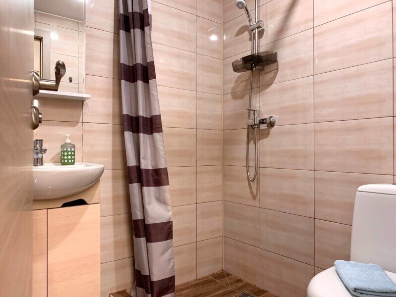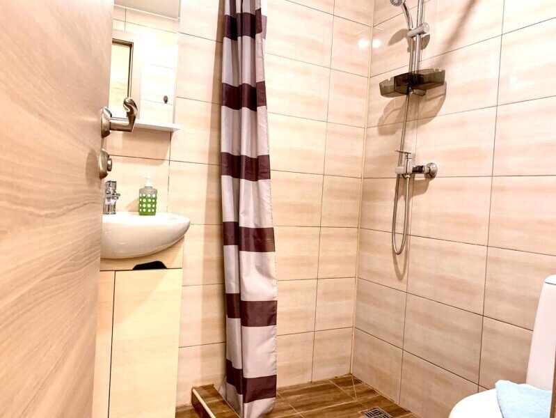 Номер имеет отдельную просторную туалетную комнату, в которой имеются душ, фен и туалетные принадлежности.