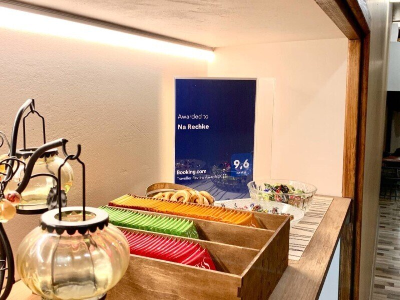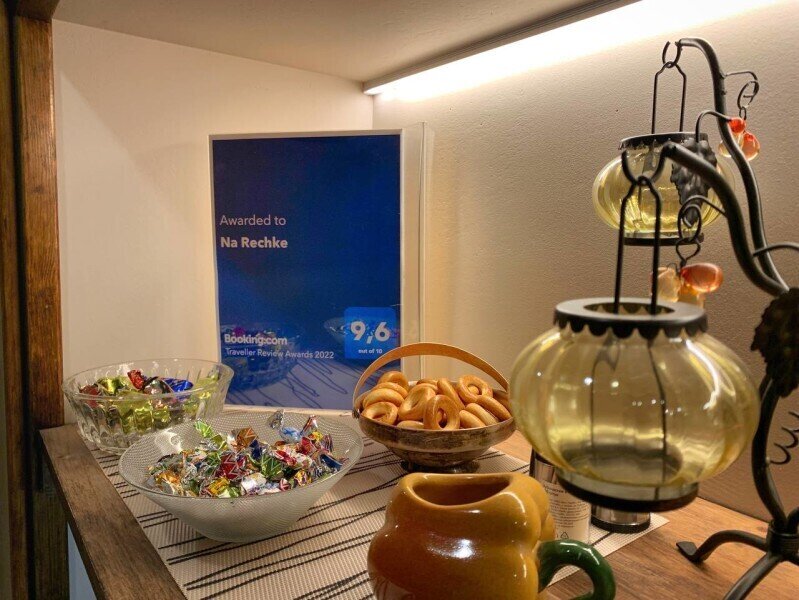 Оборудование номера отвечает всем требованиям современности для комфортного отдыха: ЖК-телевизор, чайник, холодильник, мини-кухня с небольшим набором посуды и сейф для хранения ценных вещей. В гостевом доме действует бесплатный высокоскоростной интернет (Wi-Fi).
