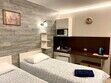 Номер имеет отдельную просторную туалетную комнату с подогревом пола, в которой имеются душ, фен и косметические принадлежности.