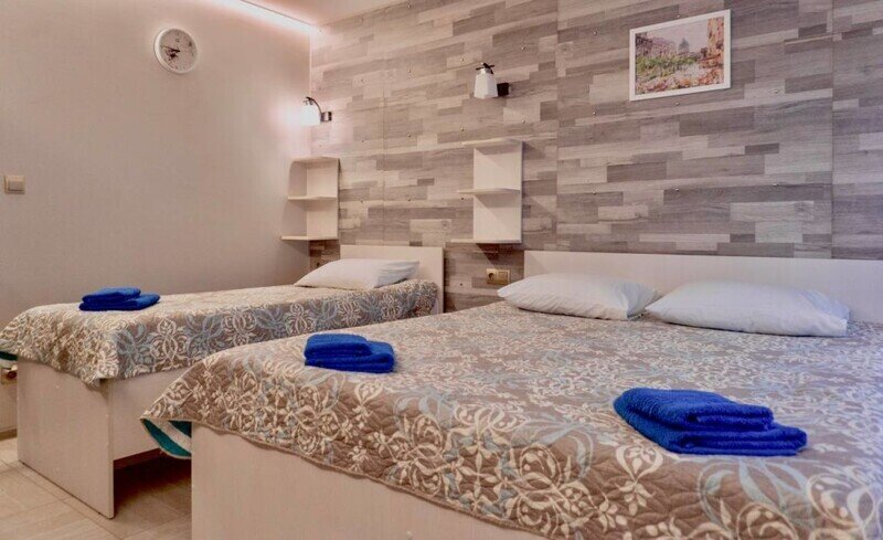 Семейный отдыхДостоинстваУютненький мини-отель, всего то 4 номера, но это плюс для меня, не люблю толпы вокруг) В номере есть все необходимое для проживания, холодильник, чайник, микроволновка и посуда. Дворами можно быстро дойти до Сенной, удачное место расположения.