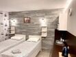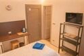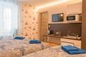 Трёхместный номер с комфортными условиями проживания площадью 14 кв.м. с 1 двуспальной и 1 односпальной кроватями, большим окном и видом во дворик.