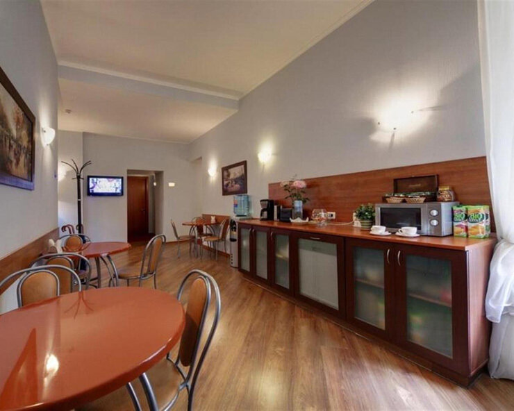 Каждый день утром в кафе накрываются вкусный и сытный завтрак. Гости могут приготовить еду на общей кухне, которая оснащена всей необходимой техникой.