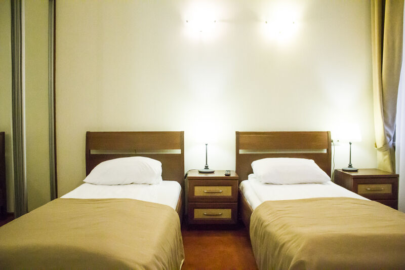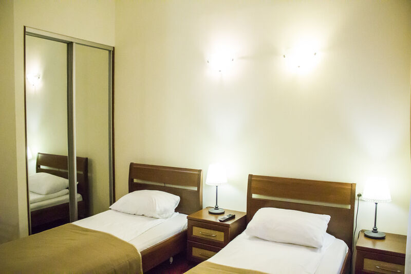 Номера выполнены в светлом стиле, они достаточно просторные, уютные и светлые. В ванной комнате есть принадлежности для личной гигиены. Наборы полотенец и постельного белья предоставляются.