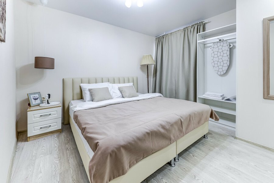 Номерной фонд включает несколько вариантов размещения. Все комнаты оформлены в светлой цветовой гамме, полностью укомплектованы мебелью и техникой. В качестве спальных мест предусмотрены двуспальные или односпальные кровати. Гости могут подключиться к Wi-Fi. На этаже установлена общая стиральная машина.
