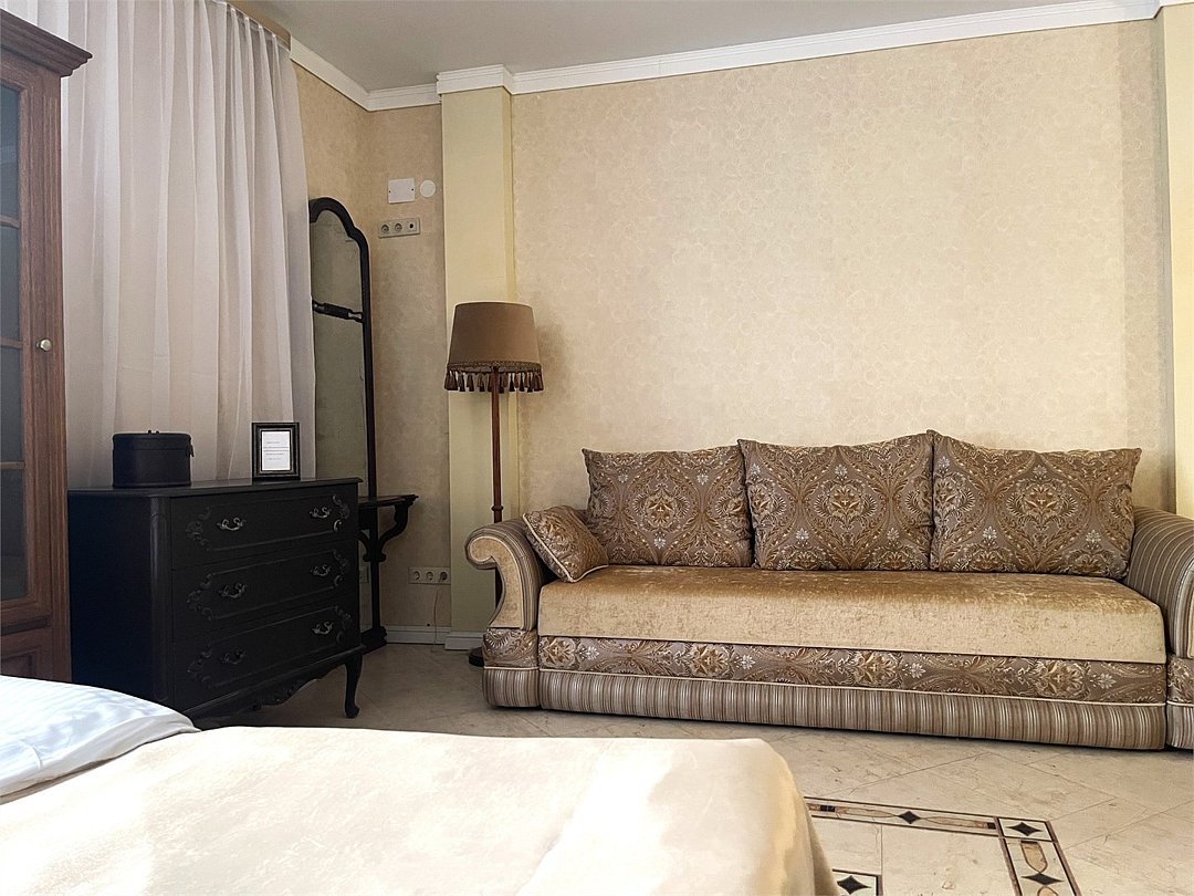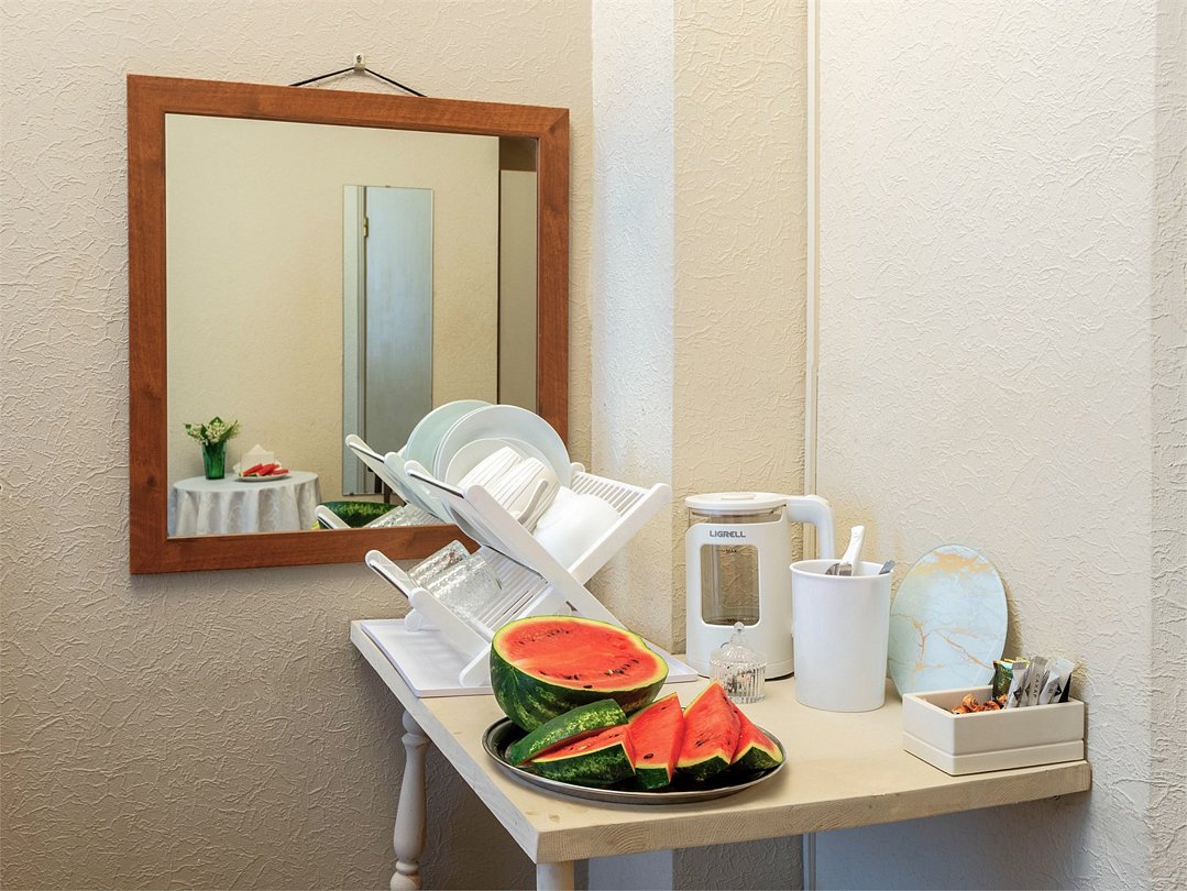 Wi-Fi, холодильник, светильник, настольные лампы, фен, вентилятор, электронные замки, плита для приготовления пищи, микроволновая печь, утюг, обогреватель, ванная комната, банные принадлежности, банные полотенца, тапочки, кровать «Queen size», гладильная доска, стулья, вешалки, обеденный стол, зеркало, комод, стиральная машина, чайник, унитаз, раковина, отопление, душ, плиточное покрытие, вид во двор, кухонная посуда, стаканы, кухонная утварь, столовые приборы, сушилка для белья, раскладной диван, мини-кухня, гостиничная парфюмерия, телевизор со Smart TV, номер для некурящих, онлайн-регистрация до заезда, антикварная мебель, фумигатор, уборка номера, вешалки-плечики, шапочка для душа, мыло, затемняющая штора, зеркало в полный рост, без питомцевВ гостиничном номере