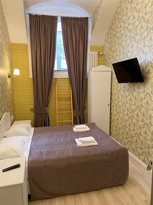 Небольшие уютные номера с окном на уровне 1,80 см от пола, для открытия окна используется приставная деревянная лесенка. Номера имеют несколько дизайнерских решений, стены украшены репродукциями картин. В номере имеется удобная двуспальная кровать или две односпальные кровати, телевизор с плоским экраном и цифровым вещанием, мини-холодильник. Ванная комната оборудована душем и туалетом. На заезде для гостей приготовлены две бутылочки питьевой воды, тапочки. Халаты, бритвенные и зубные наборы выдаются бесплатно по запросу. Окна всех номеров выходят на тихий дворик, часть из номеров имеет вид на Базилику Св. Екатерины Александрийской. Данные номера рекомендуем использовать под одноместное размещение.Услуги и удобства