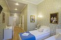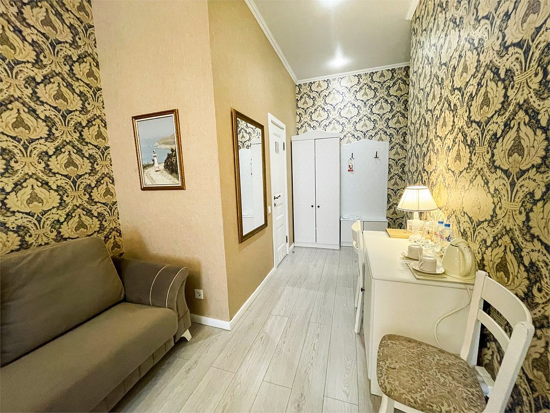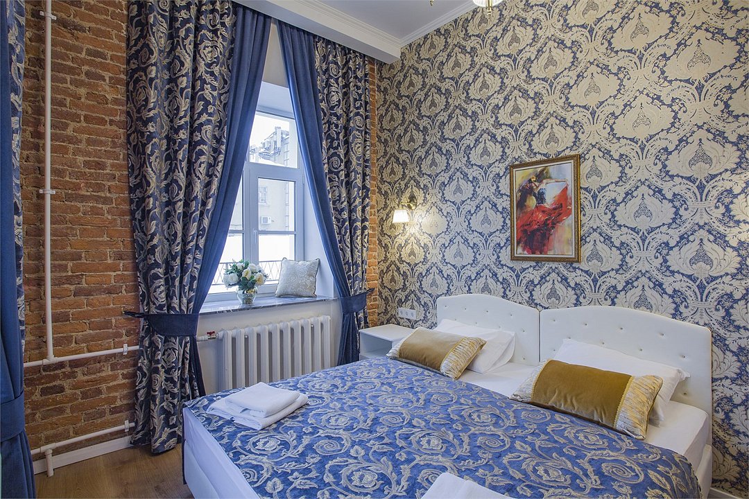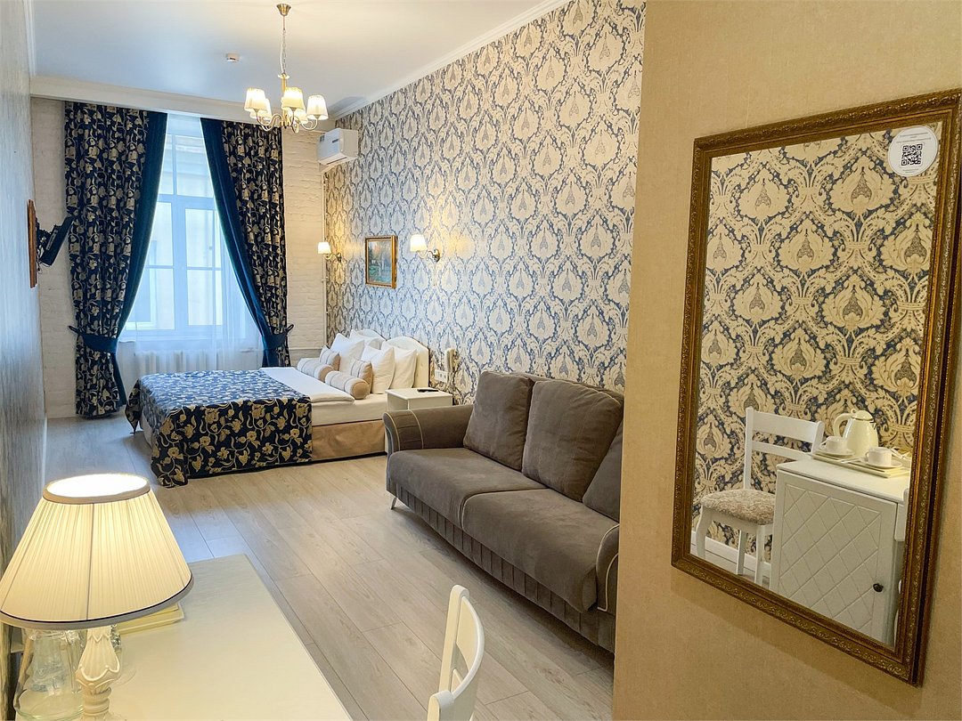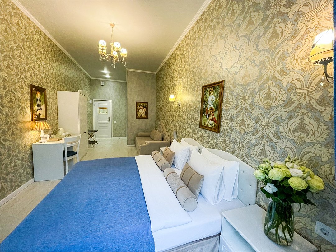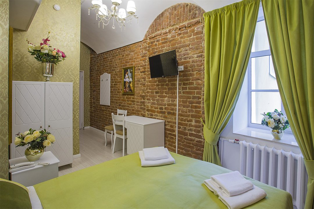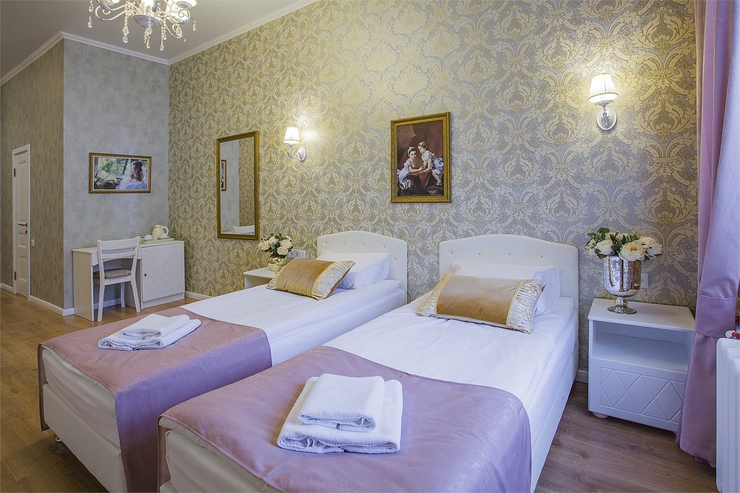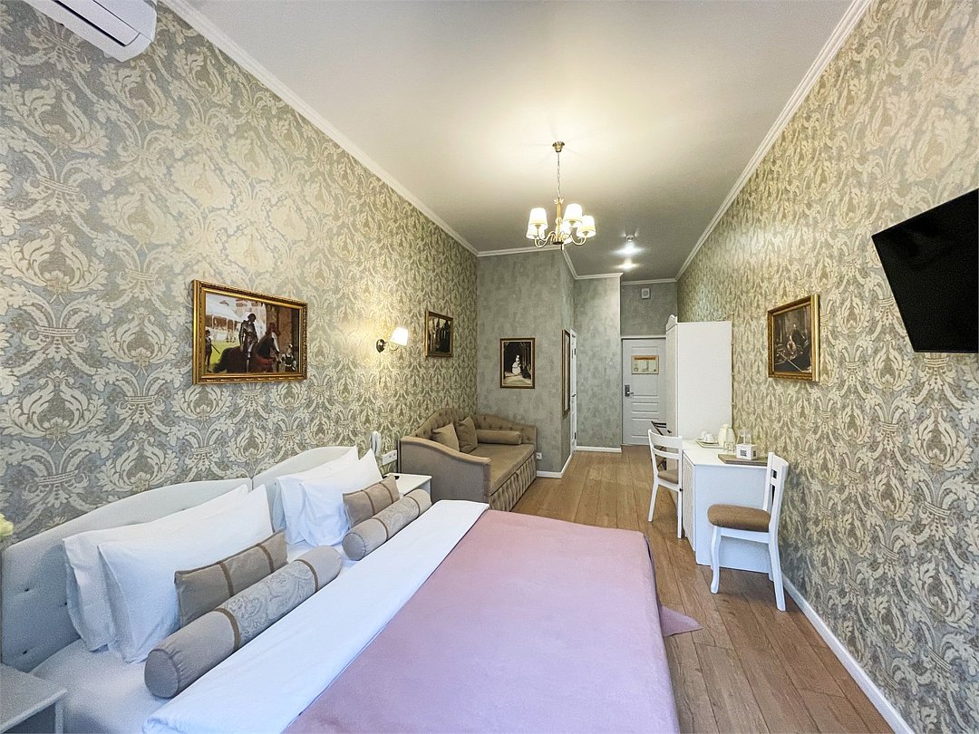 Изысканные номера имеют несколько дизайнерских решений, в оформлении номеров использованы эксклюзивные итальянские обои из лимитированной коллекции. Номер подходит как для одноместного, так и двухместного размещения. Площадь номера достаточна для того, чтобы не нарушать личное пространство друг друга. Удобные кровати позволят отлично отдохнуть после насыщенного дня. Окна всех номеров выходят в тихий двор. Все номера для некурящих, оснащены сан. узлом с душем, феном и бесплатными туалетными принадлежностями, а также Wi Fi. Во всех комнатах есть телевизор, мини-холодильник, чайная станция, телефон для внутренней связи, кондиционер. Гостям предоставляются наборы полотенец, махровые халаты, одноразовые тапочки, фен, индивидуальные косметические принадлежности, две бутылочки питьевой воды. Бритвенные и зубные наборы выдаются бесплатно по запросу.Услуги и удобства