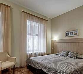 Комфортабельный просторный номер с одной большой (180 см) или двумя раздельными (90 см)кроватями. В номерах данной категории возможна установка дополнительной кровати(Требует предварительного подтверждения от отеля). Окна выходят на Большую Морскую или Гороховую улицу. Для Вашего комфорта мы используем только гипоаллергенные одеяла и подушки.Услуги и удобства
