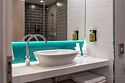 Wi-Fi, телефон, фен, электронные замки, утюг, душевая кабина, банные полотенца, косметические средства, кровать «King size», гладильная доска, вешалки, журнальный столик, багажная тумба, зеркало, чайный набор, сейф, чайник, унитаз, раковина, питьевая вода, ковровое покрытие, отопление, душ, вид на город, кулер на этаже, кресло, стаканы, цифровое тв, телевизор с плоским экраном, номер для некурящих, фанкойл, вид на канал, можно с питомцамиВ номере