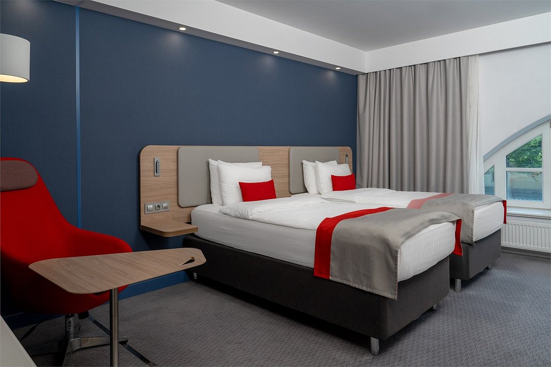 Wi-Fi, телефон, фен, электронные замки, утюг, душевая кабина, банные полотенца, косметические средства, две односпальные кровати, гладильная доска, вешалки, журнальный столик, багажная тумба, зеркало, чайный набор, сейф, чайник, унитаз, питьевая вода, ковровое покрытие, отопление, душ, вид на город, кулер на этаже, кресло, стаканы, вид на парк, цифровое тв, телевизор с плоским экраном, номер для некурящих, фанкойл, можно с питомцамиВ номере