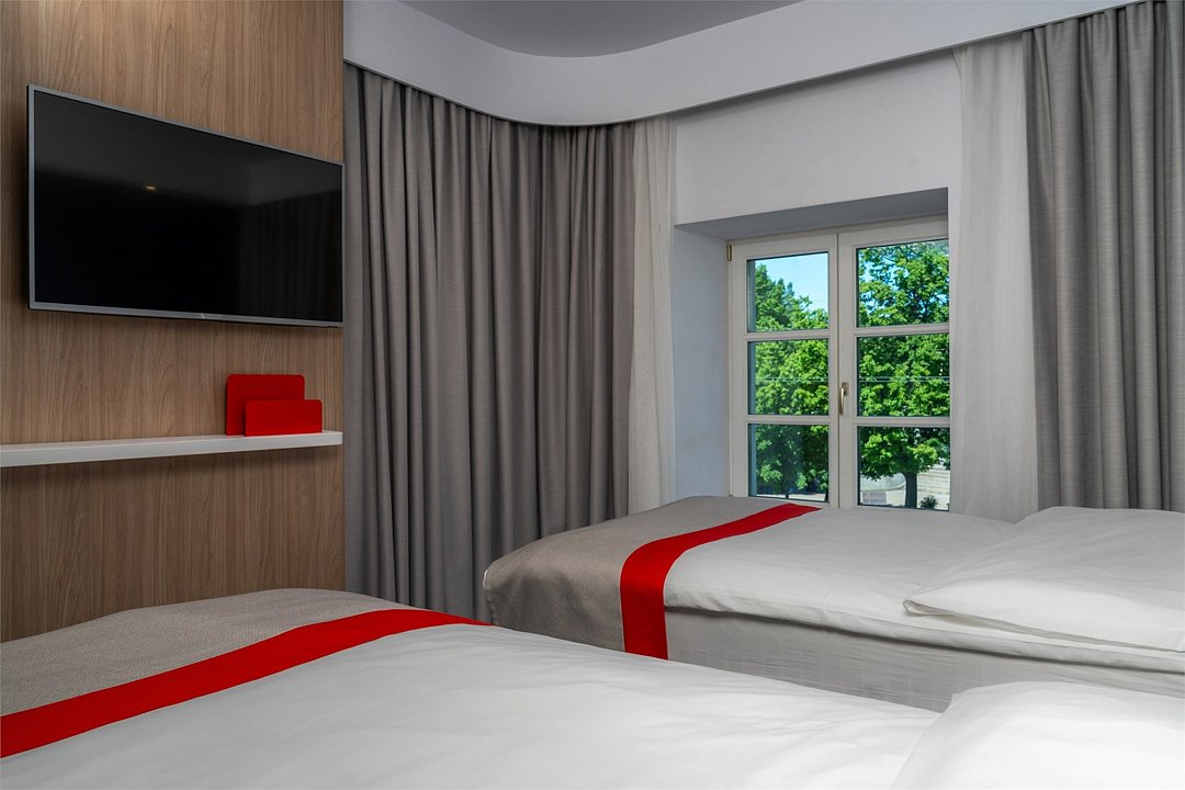 Просторный номер,средняя площадь 23-34 кв.м., с двумя раздельными кроватями и бесплатным доступом в Интернет.Мини-бар, набор для приготовления чая и кофе, утюг доступны в каждом номере. Почувствуйте комфорт с индивидуальной системой кондиционирования.Услуги и удобства