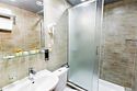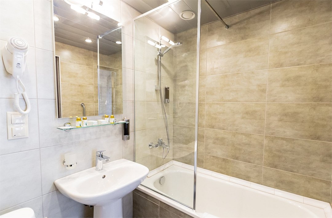 Относительно туалетной комнаты, можно описать её следующим образом. Светло, ароматно, чисто, красиво в меру, но чертовски мало места. Представьте слона, которому говорят, что в стойле много вкусностей для него, он неслыханно рад тому, что все это для него, а вот воспользоваться в полной мере не может. Отсюда уныние, мотание хоботом (ниже-поймете почему) и понимание, что вдвоем (а номер двухместный) воспользоваться благами Мойдодыра увы-не получится. Водрузив себя на белый трон, вы непременно упретесь коленями в стену, а прямо перед вашим носом будет расположена розетка с эмблемой бритвы, словно зазывая вас незатейливо-«давай, сунь свой нос, докажи, что мужик!». Если надумаете поспать подольше-часиков до девяти-десяти, будьте готовы мыться в прохладной воде. Связано это, скорее всего, с тем, что возрастает потребление воды вашими соседями, а как известно, «в тесноте да не в обиде» – никто не отменял. На мой простой вопрос по данному поводу в адрес строгого администратора последовал столь же простой и строгий ответ – не знаем, никто не жаловался. Ну и ладно, зато балкон.