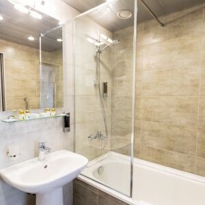 В номерах есть телевизор и халат. Оснащение зависит от выбранной категории номера.