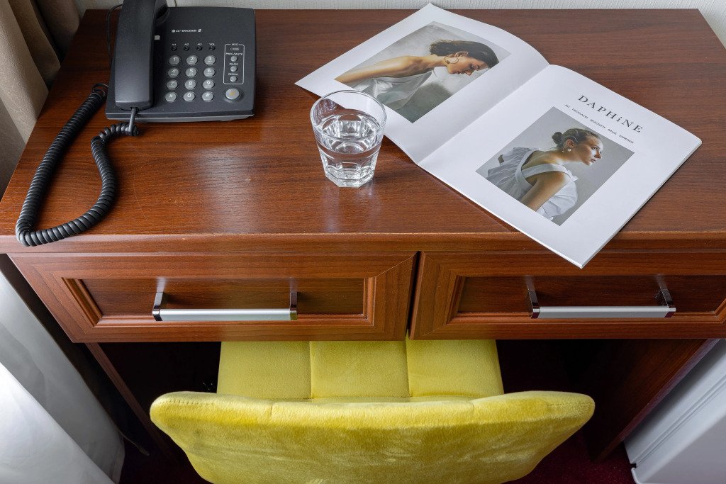 кабельное телевидение, Wi-Fi, телефон, кондиционер, фен, душевая кабина, банные полотенца, тапочки, кровать «Queen size», вешалки, зеркало, чайный набор, чайник, раковина, ковровое покрытие, отопление, вид на город, кулер на этаже, вид во двор, стул, туалет, телевизор с плоским экраном, москитная сетка, гостиничная парфюмерия, рабочий стол, можно с питомцамиВ номере