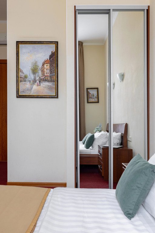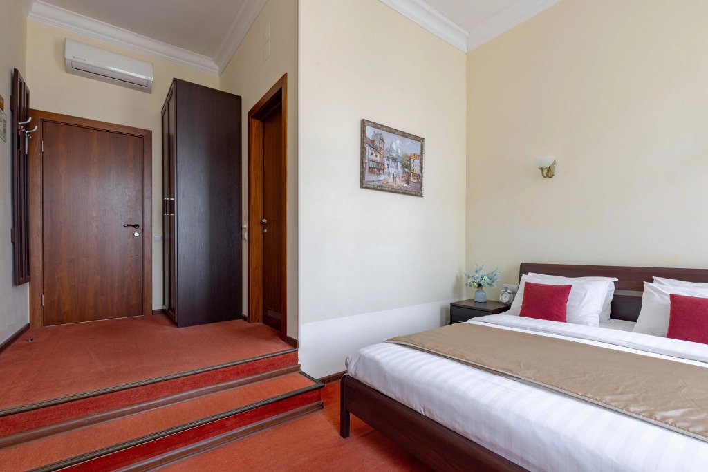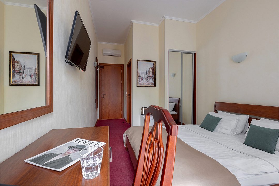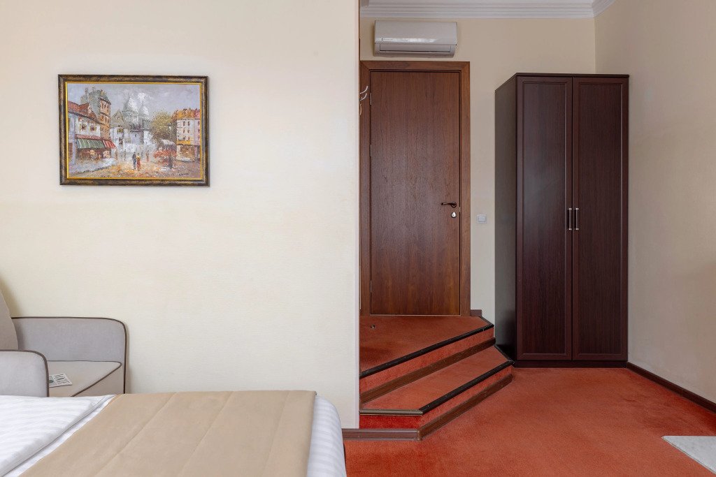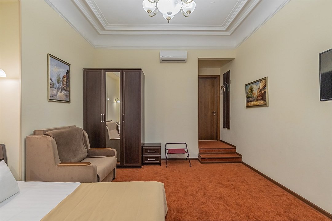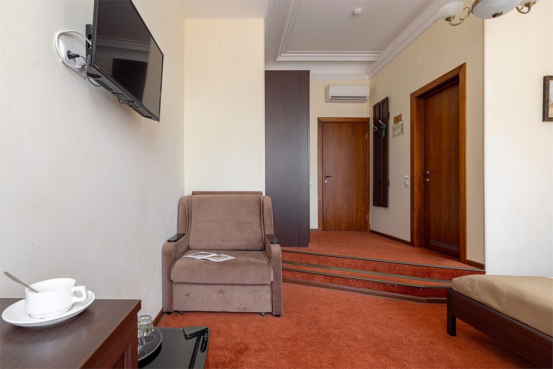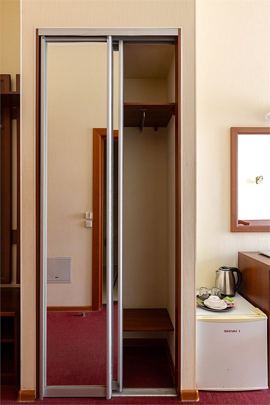 Комнаты данной категории идеально подойдут как для семейного и туристического отдыха, так и для командировок. Комнаты оснащены всем необходимым для комфортного пребывания: две односпальные кровати (90*200см) или одна большая (180*200см), кондиционер, мини-холодильник, чайный набор, шкаф, тумбочки, кресло раскладное, письменный стол с стулом и зеркалом, сейф, телевизор. В собственной ванной комнате есть душевая кабина, туалет, раковина с зеркалом, гостиничная парфюмерия и набор полотенец. Окна выходят в тихий внутренний дворик. Данная категория предназначена для размещения от 1 до 3 человек (возможно размещение 2 взрослых и 2 детей) В стоимость включены: ежедневная уборка и Wi-Fi на всей территории.Услуги и удобства