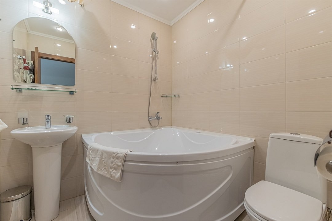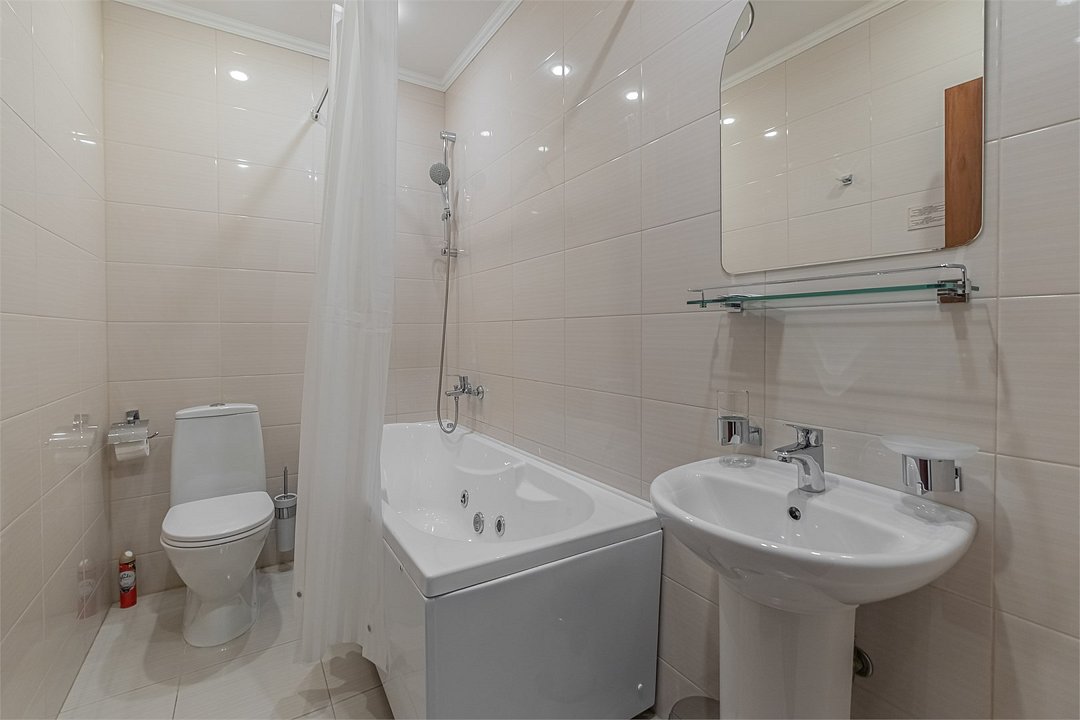 кабельное телевидение, Wi-Fi, телефон, кондиционер, фен, ванная комната, халаты, банные полотенца, тапочки, кровать «King size», шкаф для одежды, вешалки, письменный стол, багажная тумба, зеркало, чайный набор, сейф, чайник, раковина, ковровое покрытие, отопление, вид на город, стул, туалет, телевизор с плоским экраном, мини-холодильник, москитная сетка, гостиничная парфюмерия, джакузи, можно с питомцамиВ номере