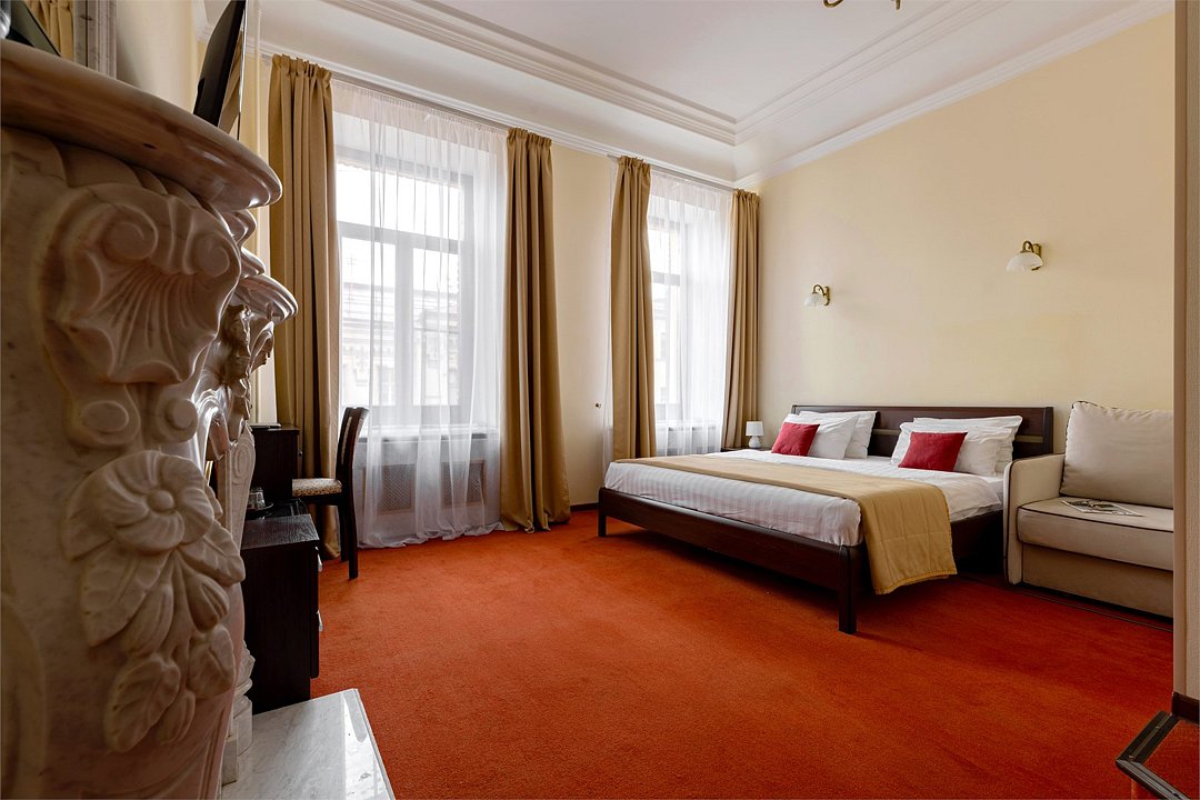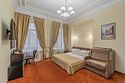 Просторные комнаты "Делюкс" станут для Вас настоящим домом! Невероятный вид на улицу Рубинштейна и Невский проспект, в одном из номеров есть камин 20 века, гидромассажная ванна для романтического вечера или приятного отдыха после прогулок по Санкт-Петербургу, кровать размера king-size - и это далеко не все плюсы этих комнат! Комнаты оснащены кондиционером, телевизором, письменным столом со стулом и зеркалом, чайным набором, мини-холодильником, большим шкафом и чемоданницей, тумбочки, сейф. В номере есть раскладное кресло для размещения третьего человека. В собственной ванной комнате : джакузи, туалет, раковина, фен, набор полотенец и косметических принадлежностей. В стоимость включены: ежедневная уборка и Wi-Fi на всей территории.Услуги и удобства