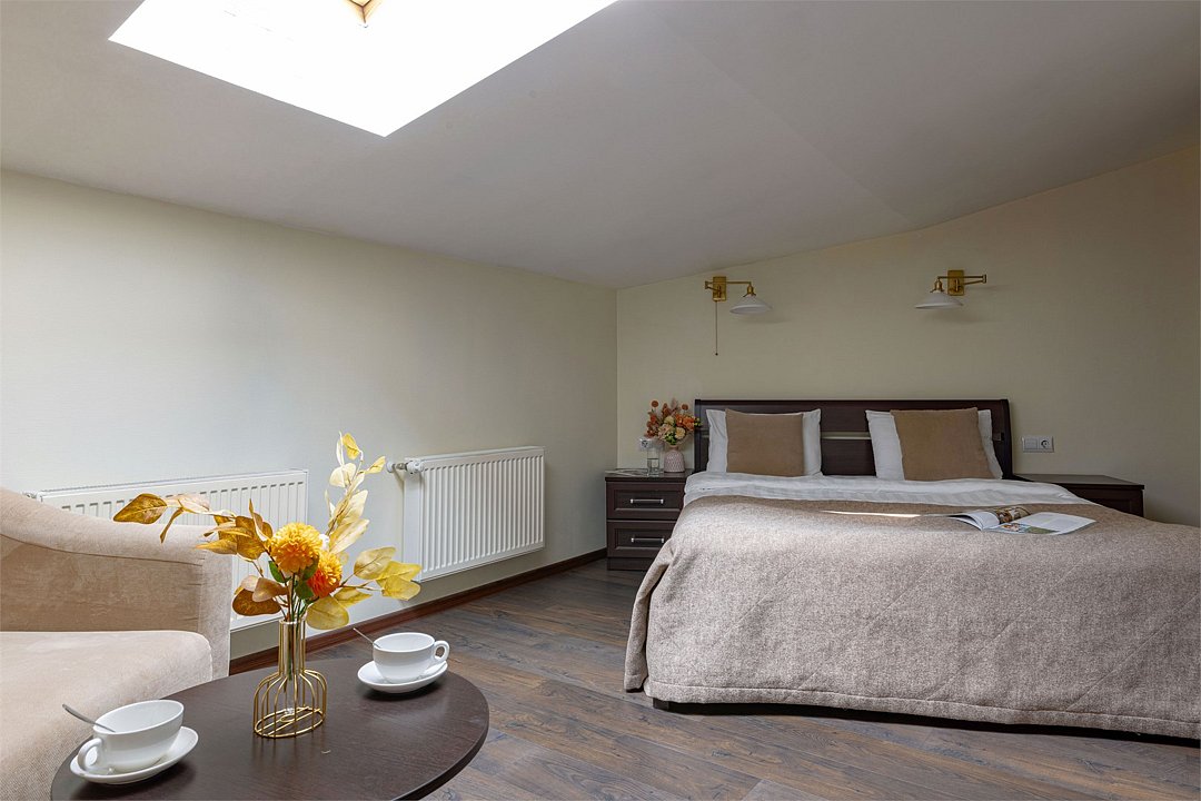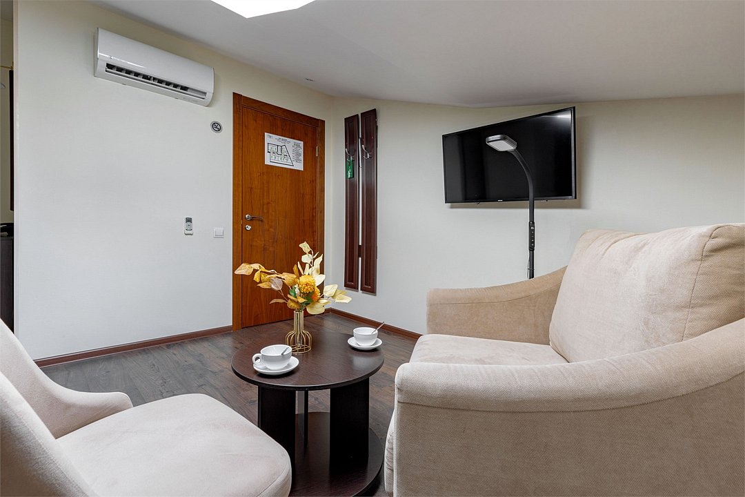 Номер повышенной комфортности с гидромассажной ванной, диваном и окнами во внутренний дворик отеля
