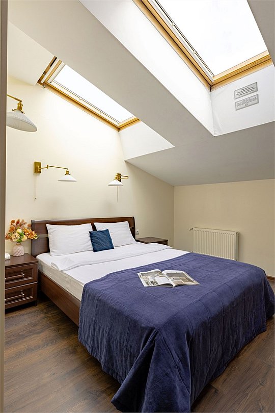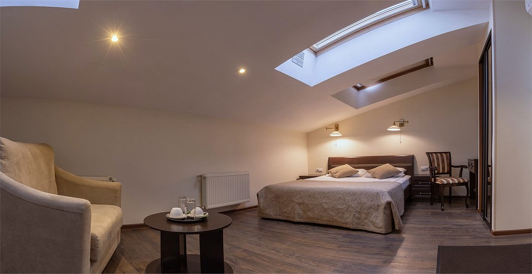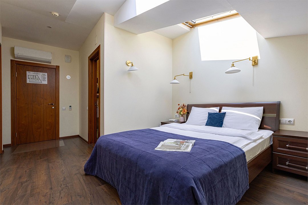 Светлые номера расположенные на мансардном этаже, состоящие из уютной спальни и ванной комнаты с душевой кабиной, феном, банными и косметическими принадлежностями. Окна номеров выходят в небо,создаётся впечатление стеклянной крыши. Романтическая атмосфера в любую погоду. Площадь 15-22 кв.м. В номерах установлена одна большая кровать, гардероб, рабочий стол. Все номера оборудованы LCD-телевизором, индивидуальной системой кондиционирования, телефоном, холодильником, чайником. О НОМЕРАХ С ДИВАНОМ УТОЧНЯЙТЕ ПО ТЕЛЕФОНУ.Услуги и удобства