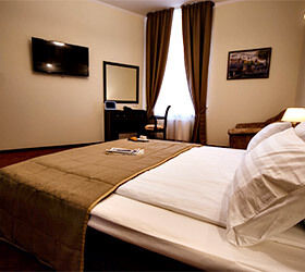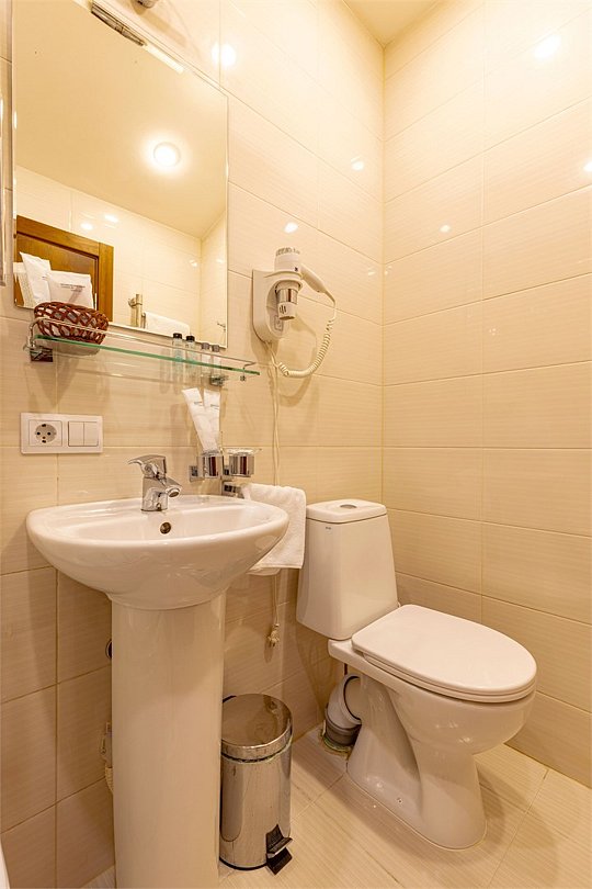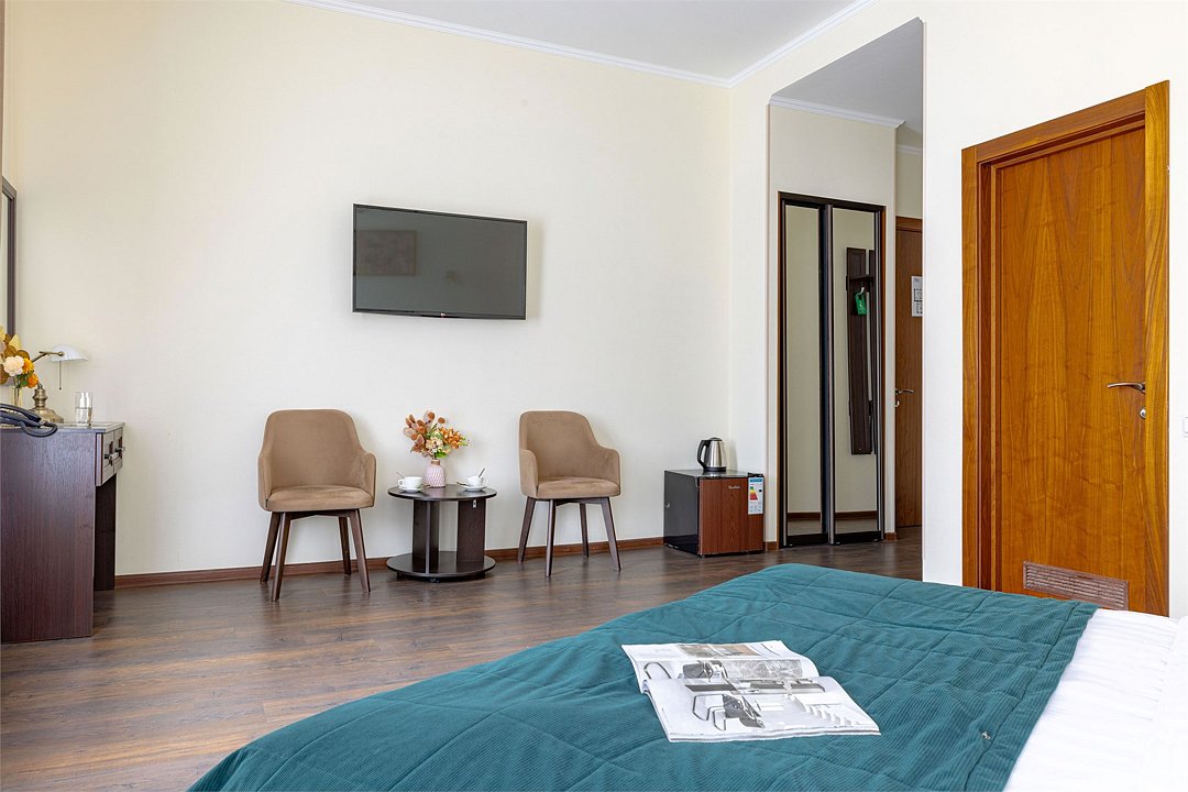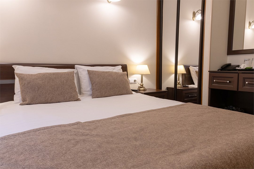 Просторные номера состоящие из уютной спальни и ванной комнаты с душевой кабиной, феном, банными и косметическими принадлежностями. Окна номеров выходят во внутренний двор отеля. Площадь около 18 кв.м. В номерах установлена как одна большая, так и две раздельные кровати, гардероб, рабочий стол. Все номера оборудованы LCD-телевизором, индивидуальной системой кондиционирования, телефоном, холодильником, чайником.Услуги и удобства