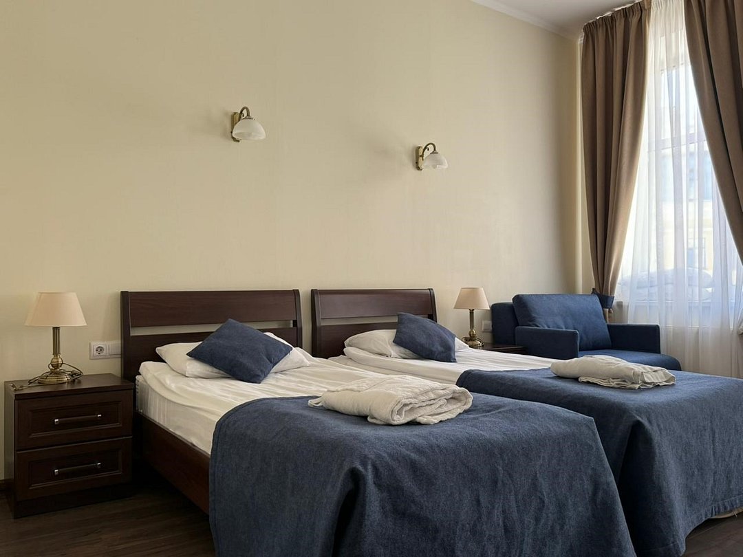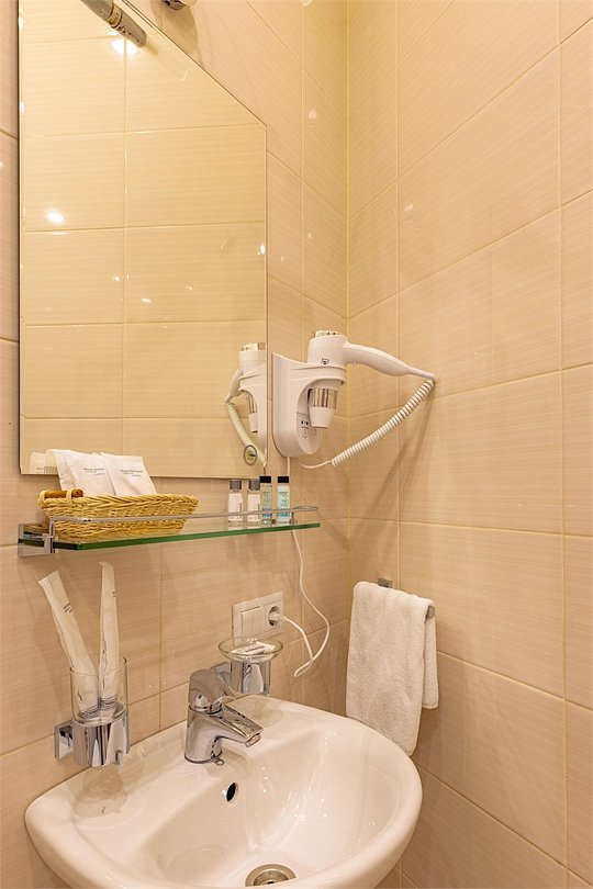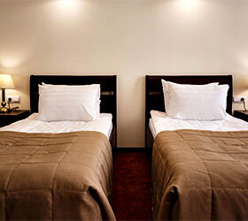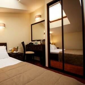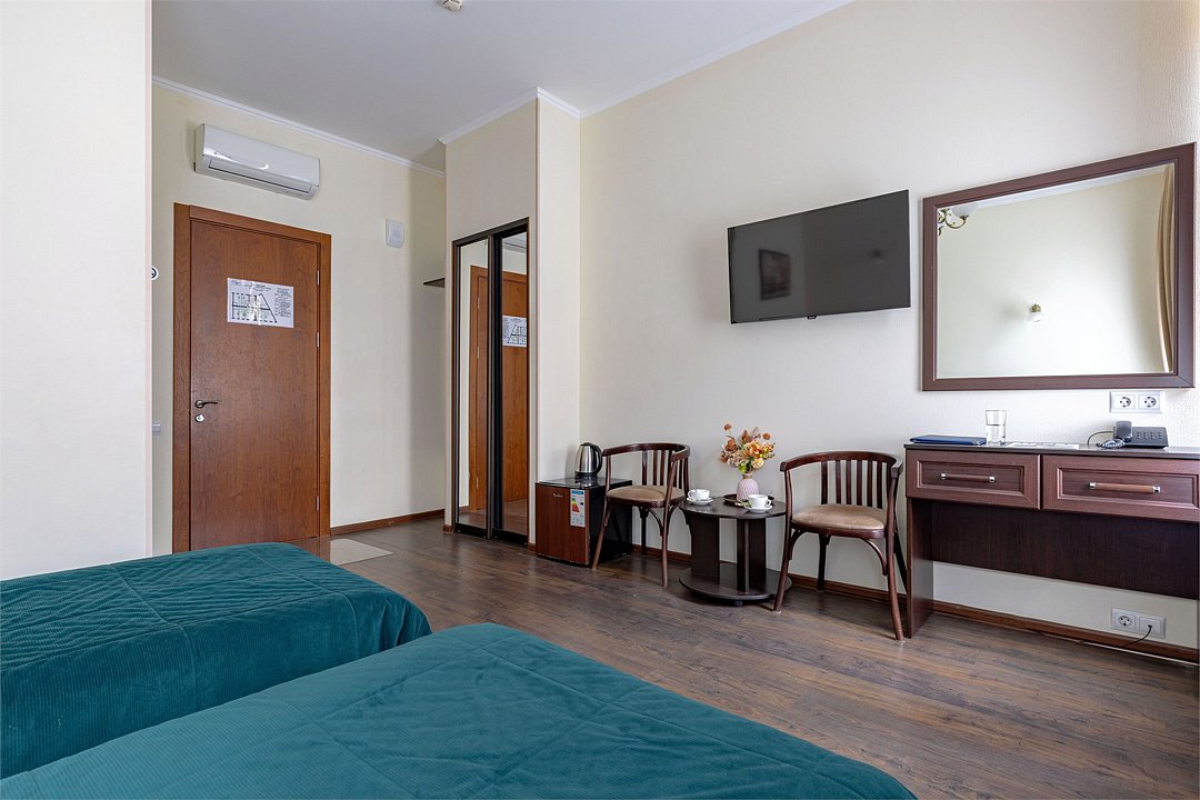 Светлые номера состоящие из уютной спальни с двумя раздельными кроватями и ванной комнаты с душевой кабиной, феном, банными и косметическими принадлежностями. Окна номеров выходят во внутренний двор отеля. Площадь около 15 кв.м. В номерах установлены две раздельные кровати, гардероб, рабочий стол. Все номера оборудованы LCD-телевизором, индивидуальной системой кондиционирования, телефоном, холодильником, чайником.Услуги и удобства