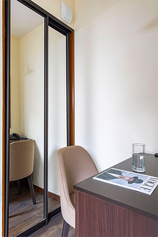 кабельное телевидение, Wi-Fi, телефон, холодильник, кондиционер, фен, ванна или душевая кабина, ванная с джакузи, халаты, тапочки, кровать «King size», стулья, журнальный столик, письменный стол, зеркало, чайный набор, сейф, чайник, унитаз, косметическое зеркало, отопление, вид во двор, ламинат, стаканы, раскладной диван, москитная сетка, шкаф-купе, номер для некурящих, кресло-кровать, фумигатор, уборка номера, вешалки-плечики, затемняющая штора, зеркало в полный рост, без питомцевВ номере