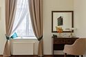 Просторные номера состоящие из уютной спальни и ванной комнаты с душевой кабиной, феном, банными и косметическими принадлежностями. Окна номеров выходят на Загородный проспект. Площадь около 16 кв.м. В номерах установлена как одна большая, так и две раздельные кровати, гардероб, рабочий стол. Все номера оборудованы LCD-телевизором, индивидуальной системой кондиционирования, телефоном, холодильником, чайником.Услуги и удобства