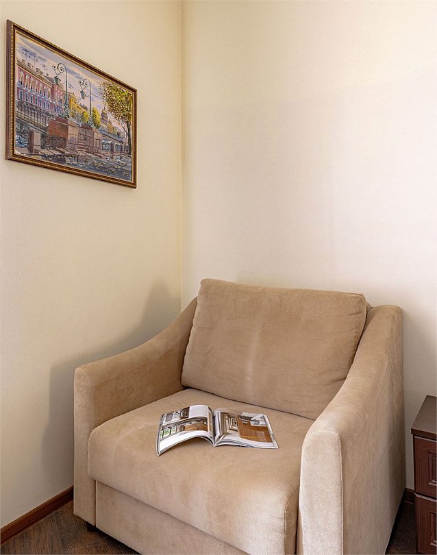Светлые номера состоящие из уютной спальни и ванной комнаты с душевой кабиной, феном, банными и косметическими принадлежностями. Окна номеров выходят на Загородный проспект. Площадь около 14 кв.м. В номерах установлена одна большая кровать, гардероб, рабочий стол. Все номера оборудованы LCD-телевизором, индивидуальной системой кондиционирования, телефоном, холодильником, чайником.Услуги и удобства