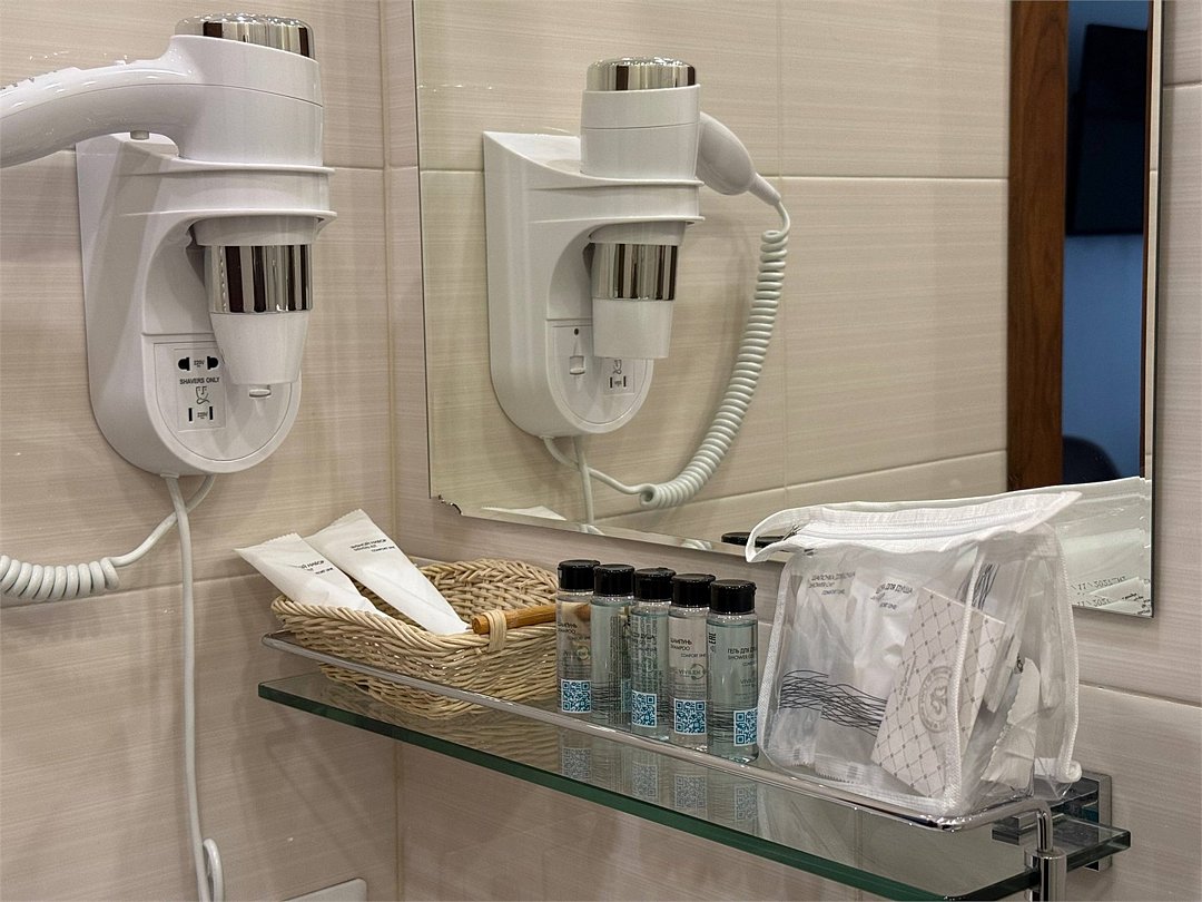 телевизор, Wi-Fi, телефон, холодильник, кондиционер, фен, душевая кабина, банные принадлежности, банные полотенца, тапочки, косметические средства, две односпальные кровати, тумбы, вешалки, письменный стол, зеркало, чайный набор, сейф, чайник, унитаз, раковина, отопление, душ, вид на город, ламинат, стаканы, стул, мини-холодильник, москитная сетка, шкаф-купе, номер для некурящих, фумигатор, уборка номера, вешалки-плечики, мыло, затемняющая штора, зеркало в полный рост, без питомцевВ гостиничном номере
