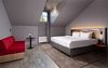 Мансардный номер с двумя раздельными кроватями и диваном, средняя площадь 19-27 кв.м. LCD TV, кондиционер, бесплатный WIFI, фен, сейф, утюг, гладильная доска, набор для приготовления чая и кофе предоставляются в каждом номере. В ванной комнате есть душ, туалетные принадлежности.Услуги и удобства