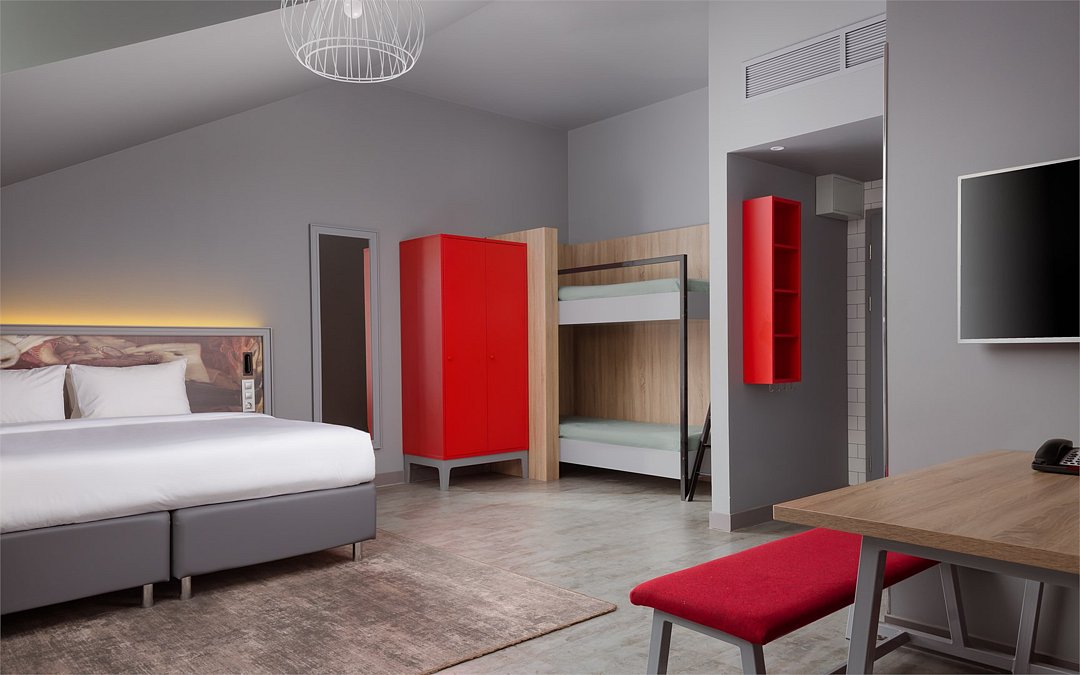 Wi-Fi, телефон, фен, электронные замки, утюг, душевая кабина, халаты, банные полотенца, тапочки, косметические средства, две односпальные кровати, гладильная доска, шкаф для одежды, вешалки, багажная тумба, зеркало, мини-бар, чайный набор, обслуживание номеров, сейф, чайник, унитаз, раковина, питьевая вода, двухъярусные кровати, ковровое покрытие, отопление, душ, вид на город, кулер на этаже, вид во двор, меню подушек, стаканы, стол, туалетные средства, туалет, цифровое тв, телевизор с плоским экраном, номер для некурящих, фанкойл, usb порт, можно с питомцамиВ гостиничном номере