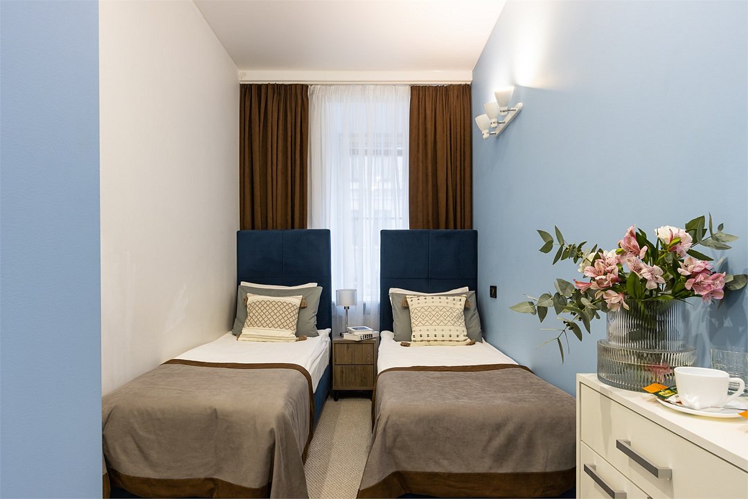 Двухместный номер с двумя односпальными кроватями и телевизором с плоским экраном. Услуги и удобства: • Душ • Фен • Бесплатные туалетно-косметические принадлежности • Туалет • Собственная ванная комната • Отопление • Кабельные каналы • Ковровое покрытие • Шкаф • Полотенца • Белье • Помещение полностью находится на первом этаже • Вешалка для одежды • Туалетная бумага Бесплатный Wi-Fi!Услуги и удобства