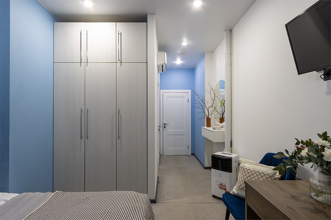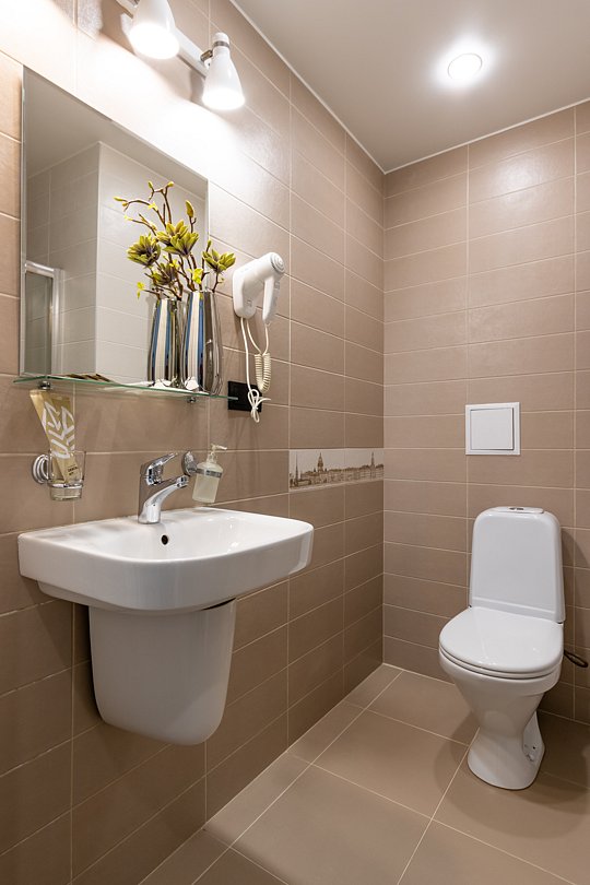 кабельное телевидение, Wi-Fi, светильник, кулер, фен, вентилятор, душевая кабина, кровать «King size», унитаз, раковина, кулер на этаже, вид во двор, туалетные средства, диван-кровать, телевизор с плоским экраном, мини-холодильник, можно с питомцамиВ номере